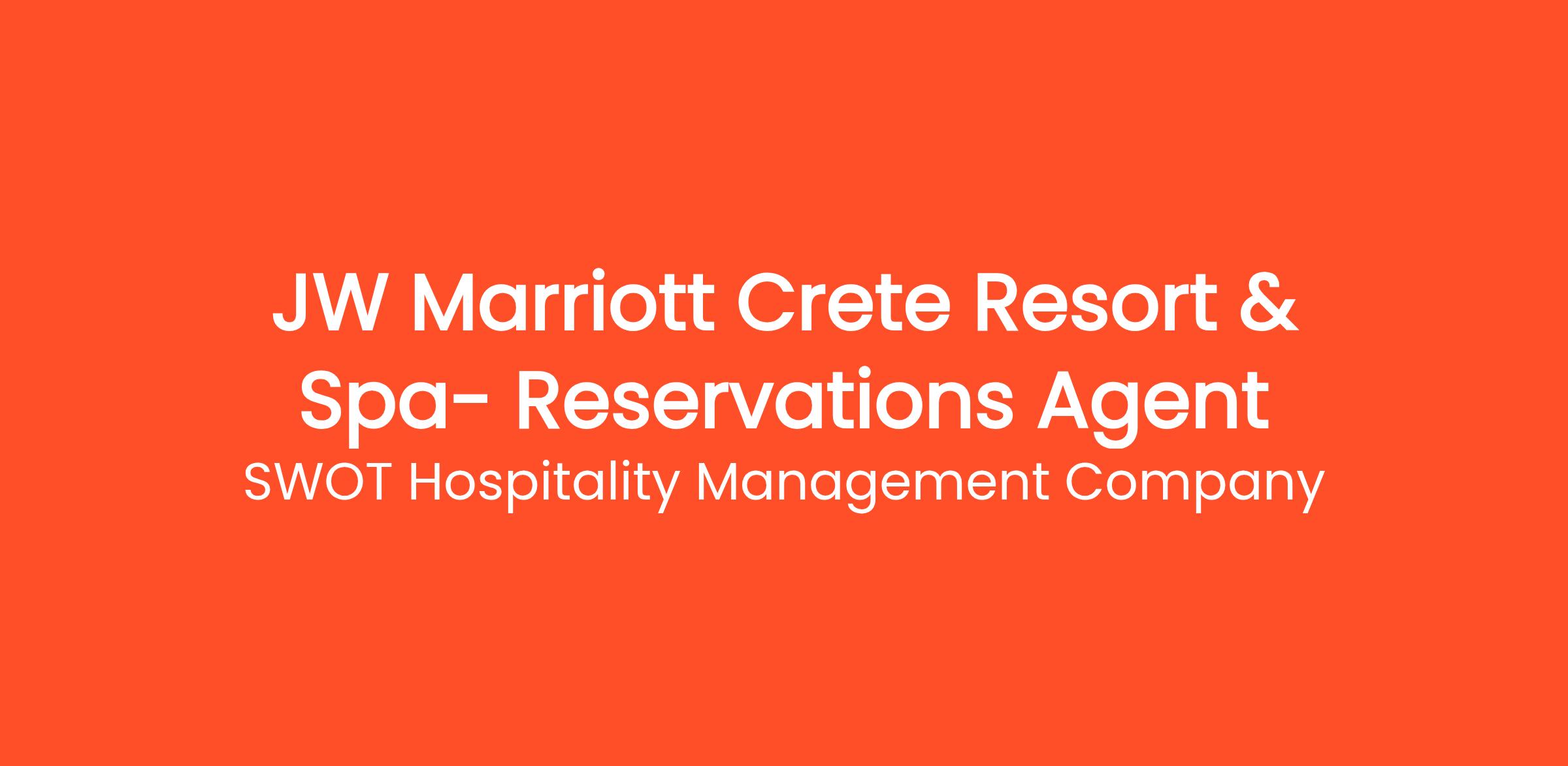 SWOT Hospitality, the leading hotel management company trusted by international investors, developers, and top-scale international luxury brands, is looking for an enthusiastic Reservations Agent to join the team at the 5-star JW Marriott Crete Resort & Spa, opening in 2025 in Chania, Crete.