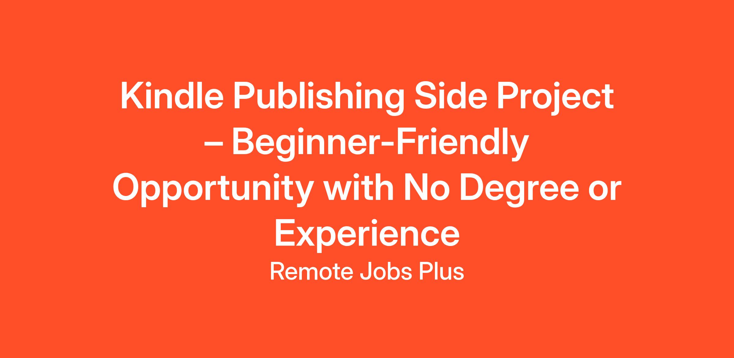 Kindle Publishing Side Project – Beginner-Friendly Opportunity with No Degree or Experience