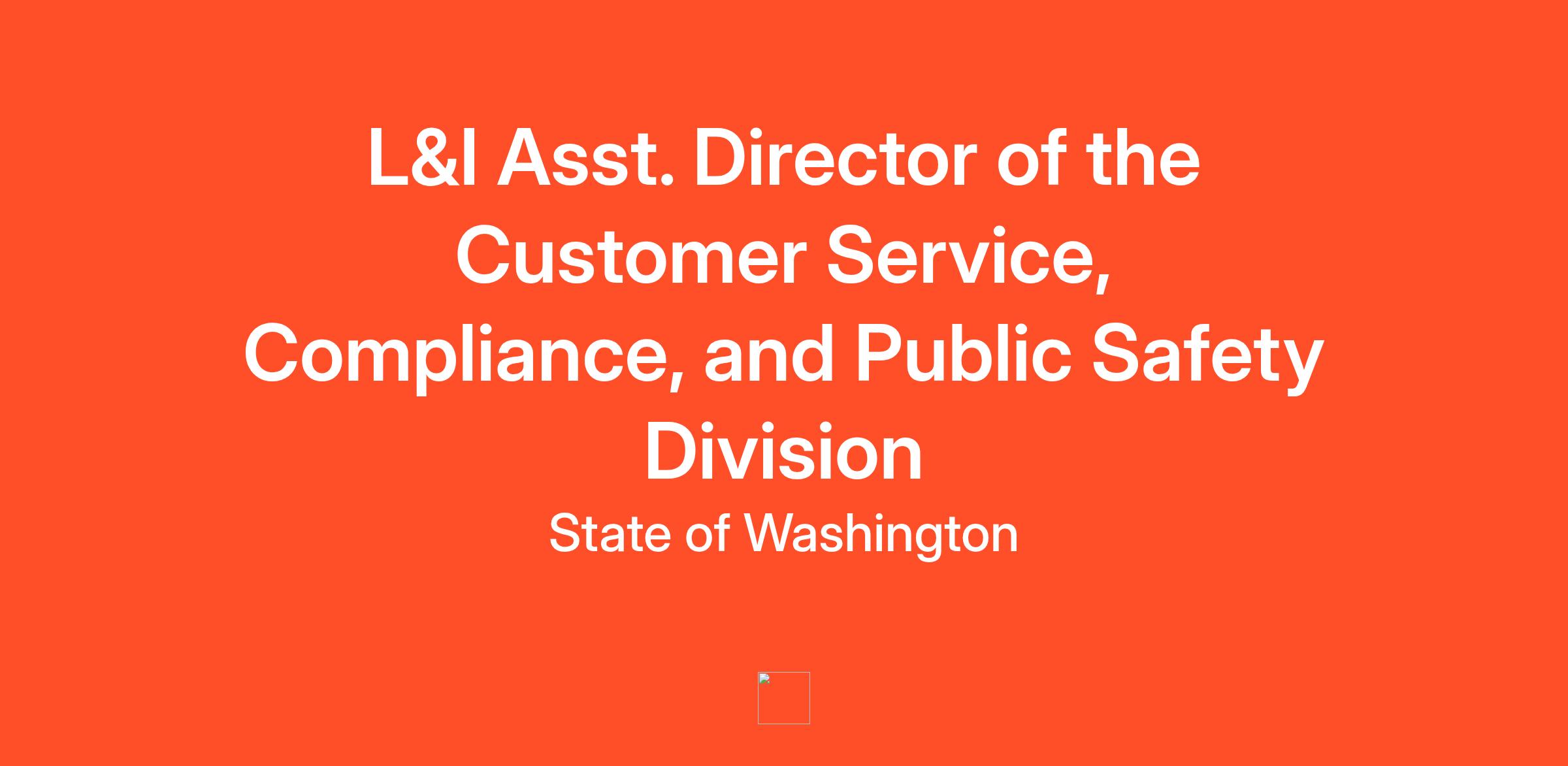 L&I is looking for its next dynamic executive leader for the role assistant director of the Customer Service, Compliance and Public Safety Division. L&I will base the salary offer on the successful candidate’s job-related skills, experience, and training. The target pay range of consideration for this exempt position is typically $120,804-$170,076 annually. The full band pay range is $98,712-$170,076 annually.