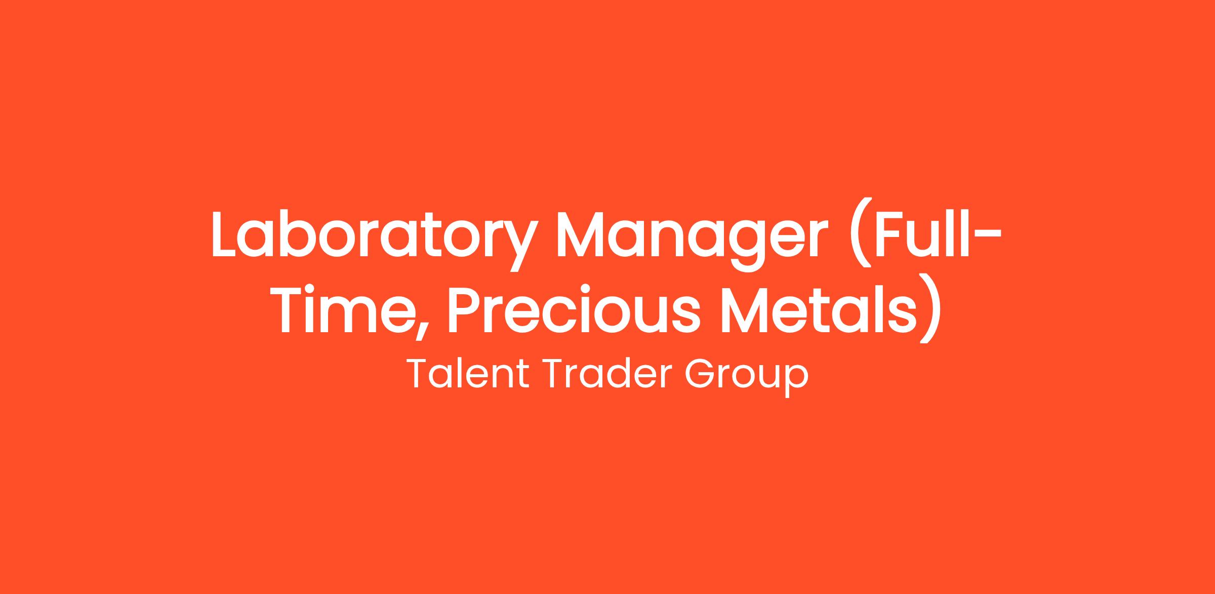 Laboratory Manager (Full-Time, Precious Metals)