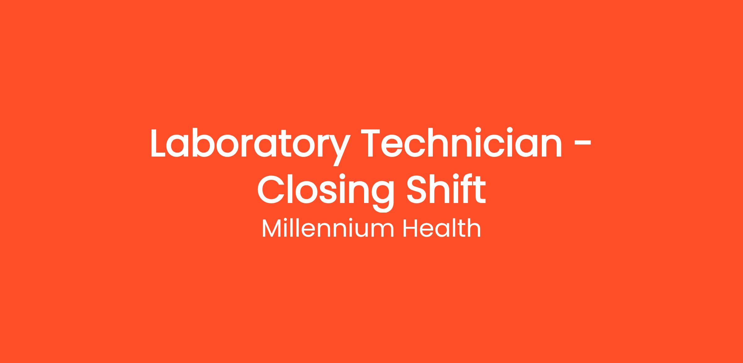 - 1+ years of general laboratory. Knowledge of laboratory terminology a plus.
