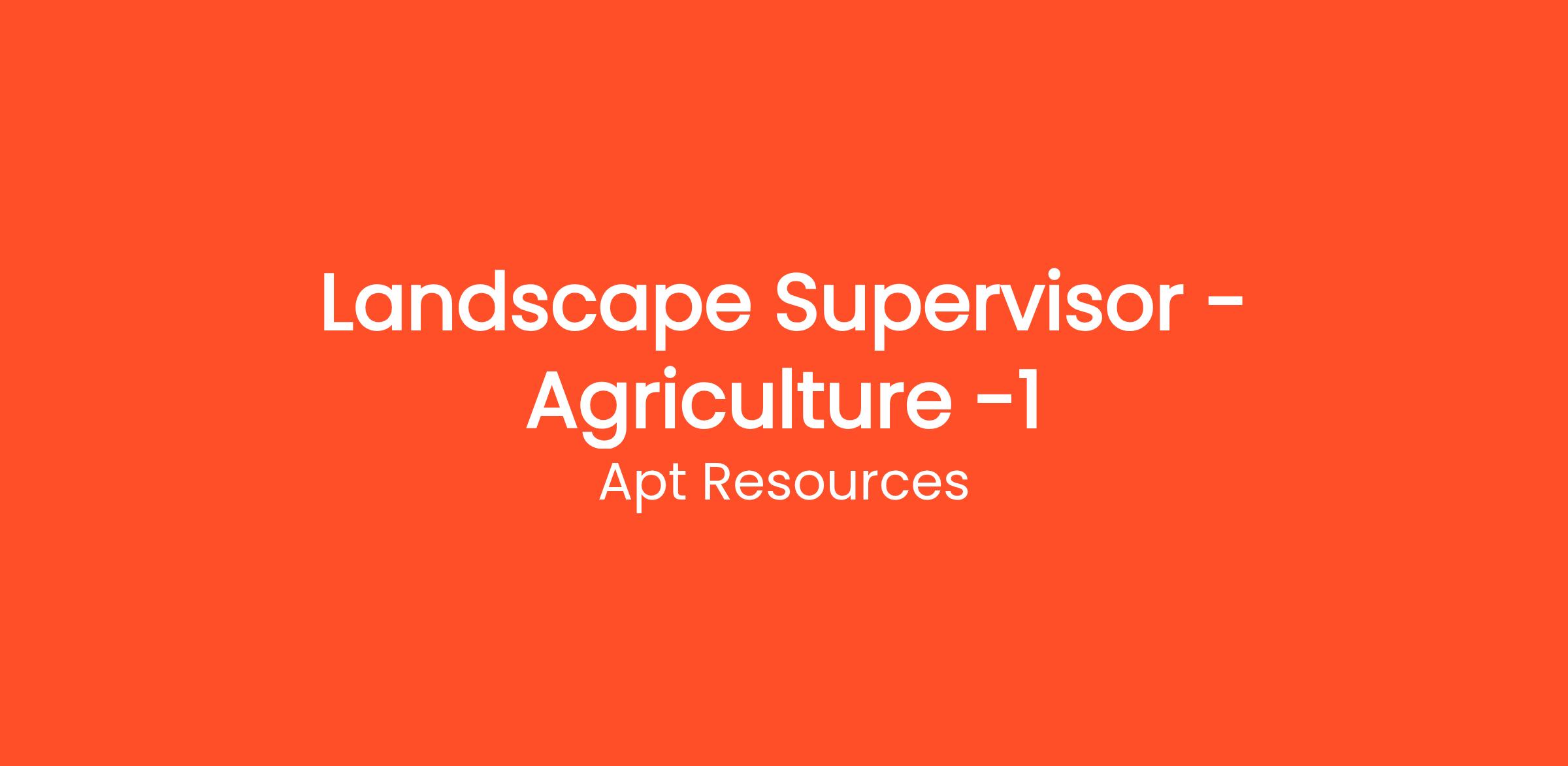 Apt Resources is searching for an experienced Landscape Supervisor to join our team focusing on Agriculture. In this role, you will oversee the landscape maintenance and development activities within agricultural settings, ensuring vibrant, healthy landscapes that support agricultural productivity.