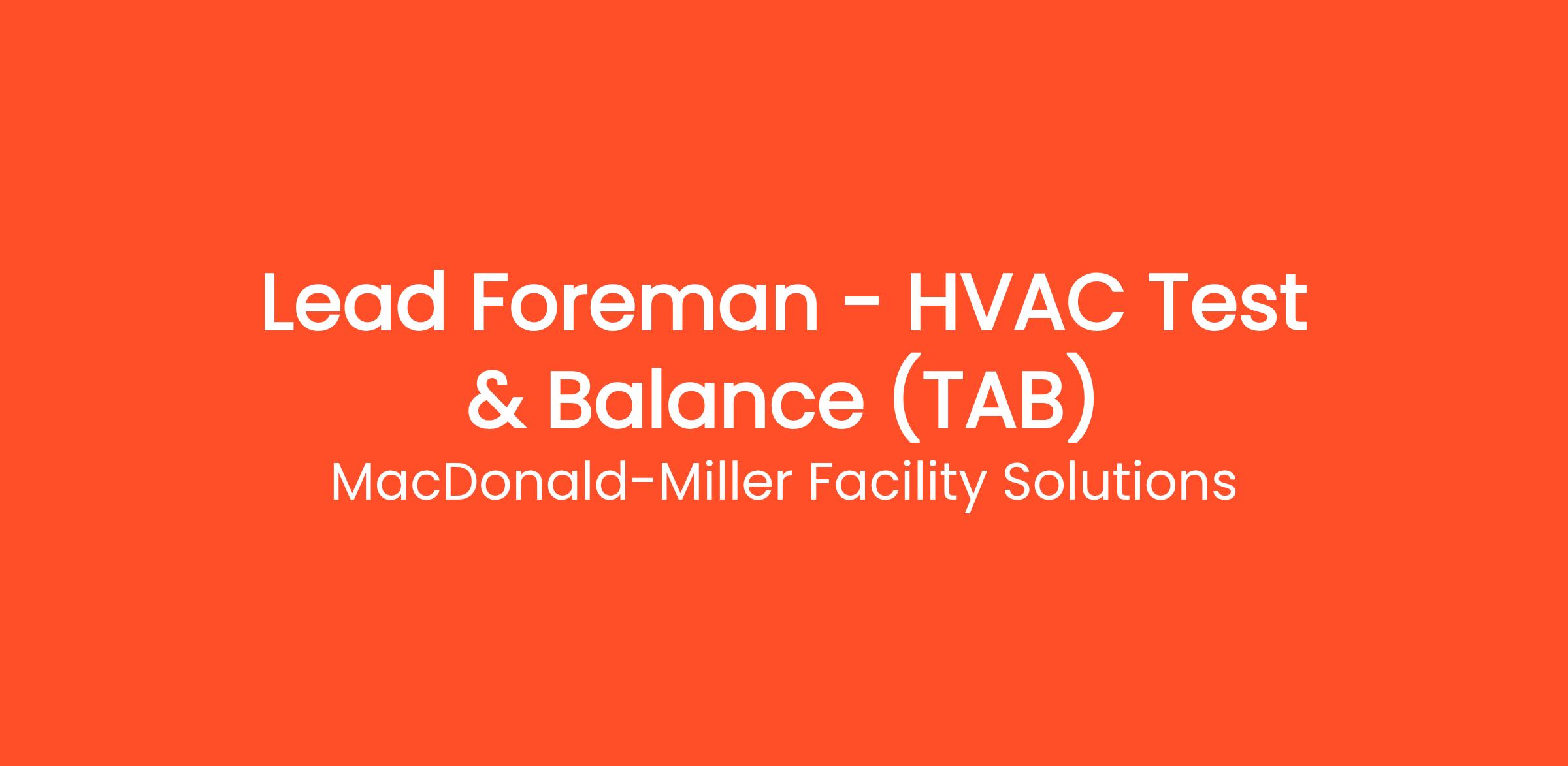 We’re seeking an experienced Lead Foreman – HVAC Test & Balance to lead and execute certified and non-certified TAB services on complex commercial HVAC systems. In this role, you’ll take ownership of TAB execution in the field—planning work, leading technicians, validating system performance against engineered design, and serving as the primary field point of contact for project teams, clients, and trade partners.