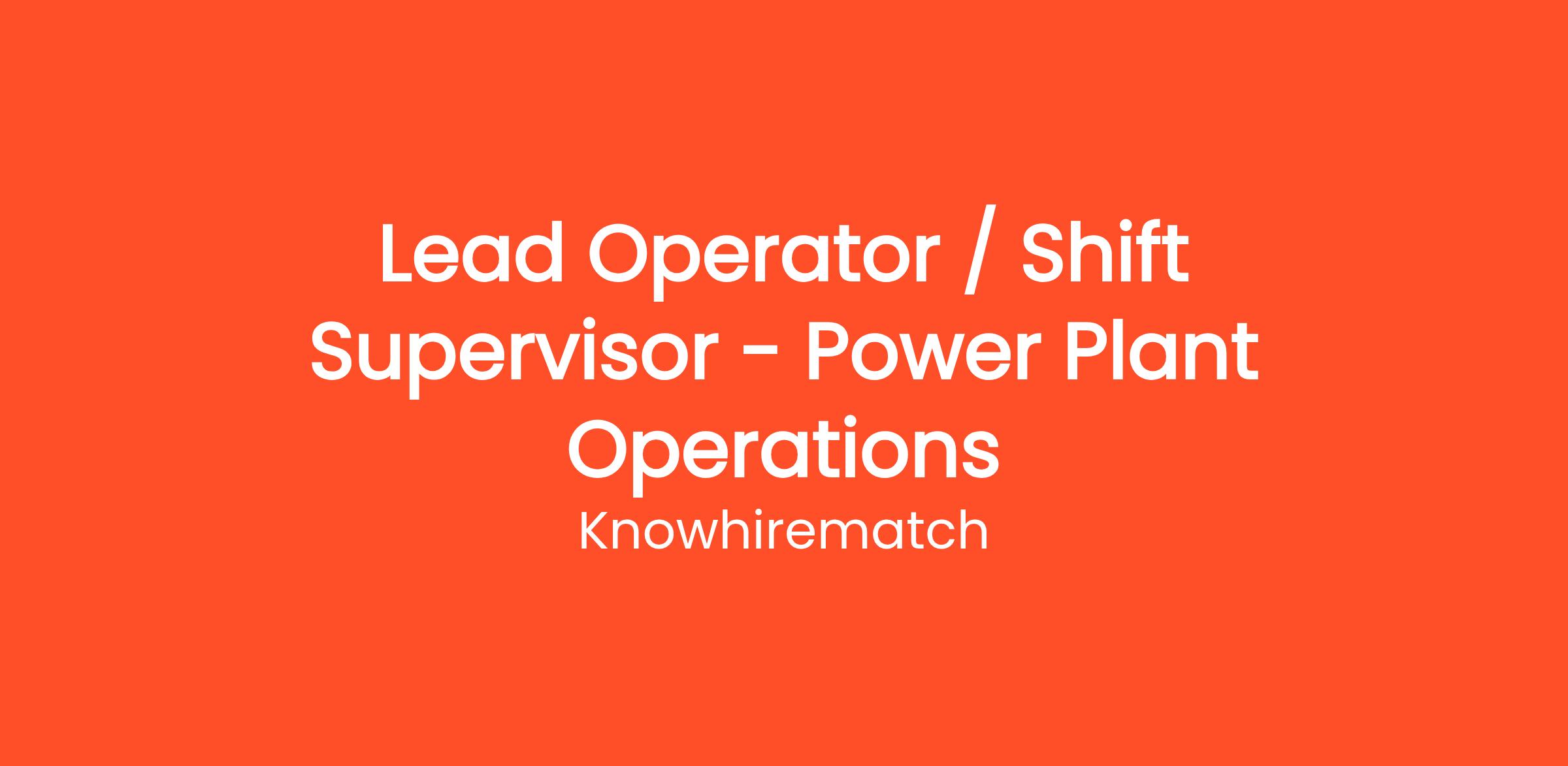 Job Title: Lead Operator / Shift Supervisor – Power Plant Operations