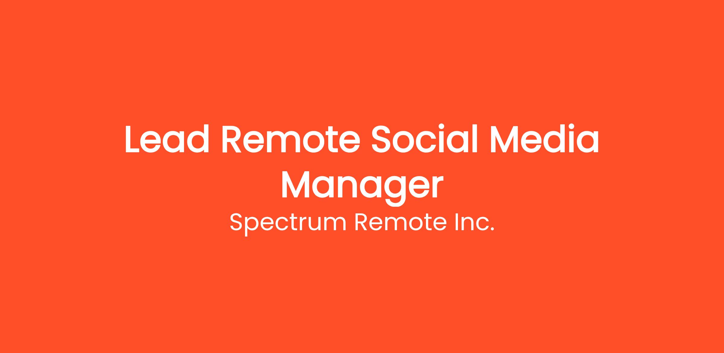 The Role: Lead Remote Social Media Manager