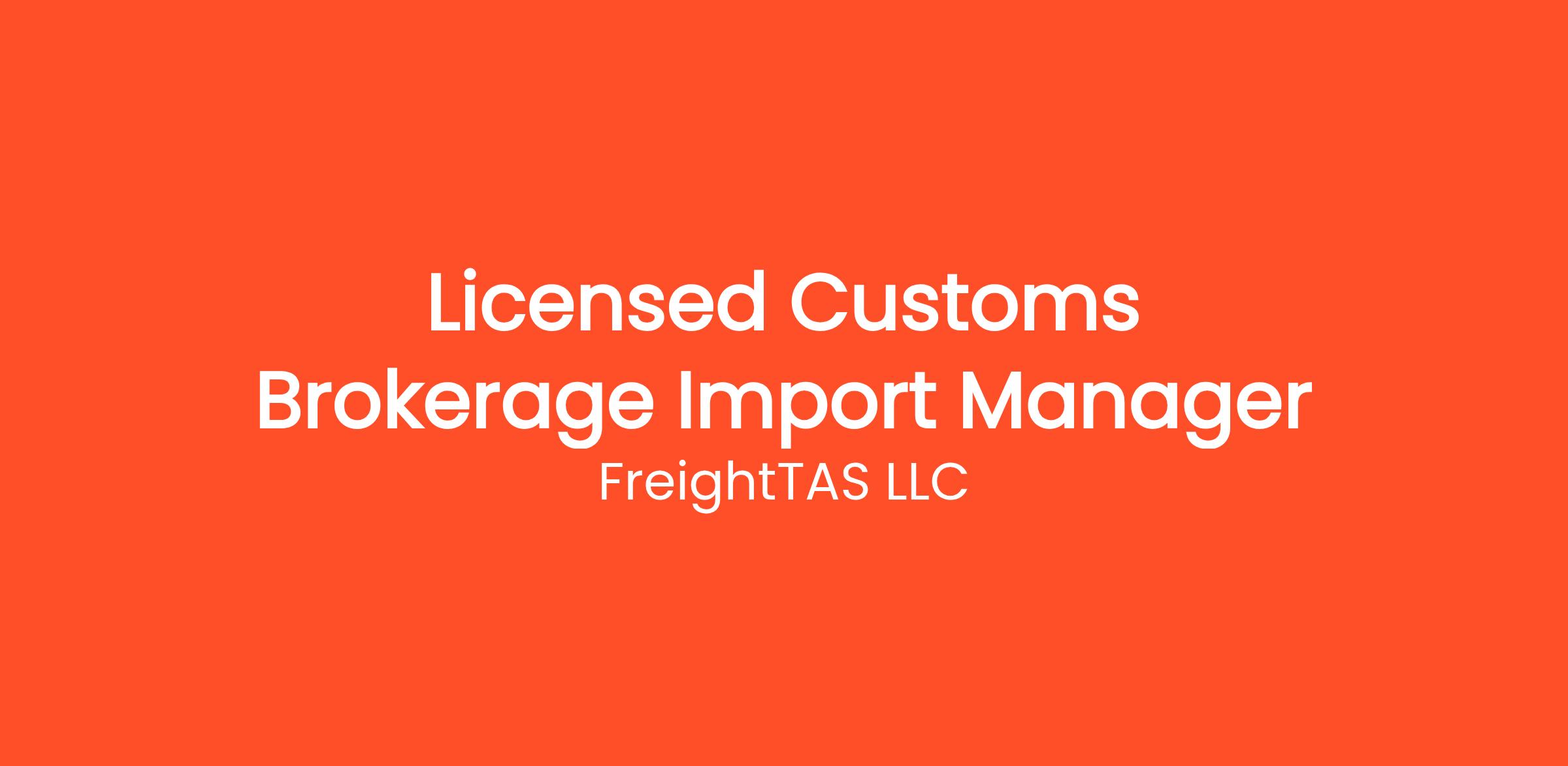 Customs Brokerage Import Manager. Licensed Required