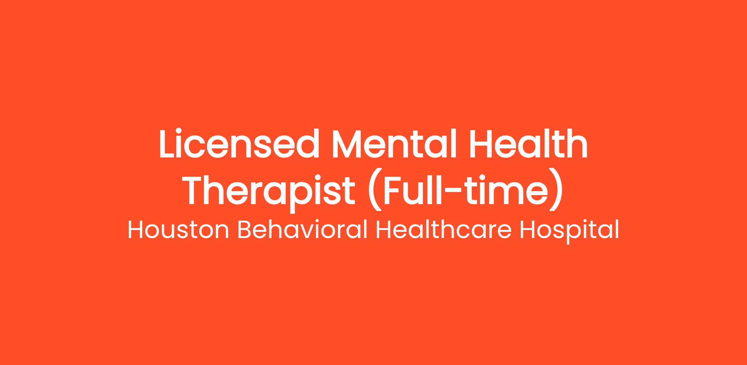 Currently, Houston Behavioral Healthcare Hospital is accepting resumes for full time Licensed Mental Health Therapists (LMSW, LCSW, LPC-A, LPC). We provide a continuum of services that allow for individualized treatment at the most appropriate level of care in the least restrictive benefit and good outcomes and stay at a continued state of readiness for the next patient.