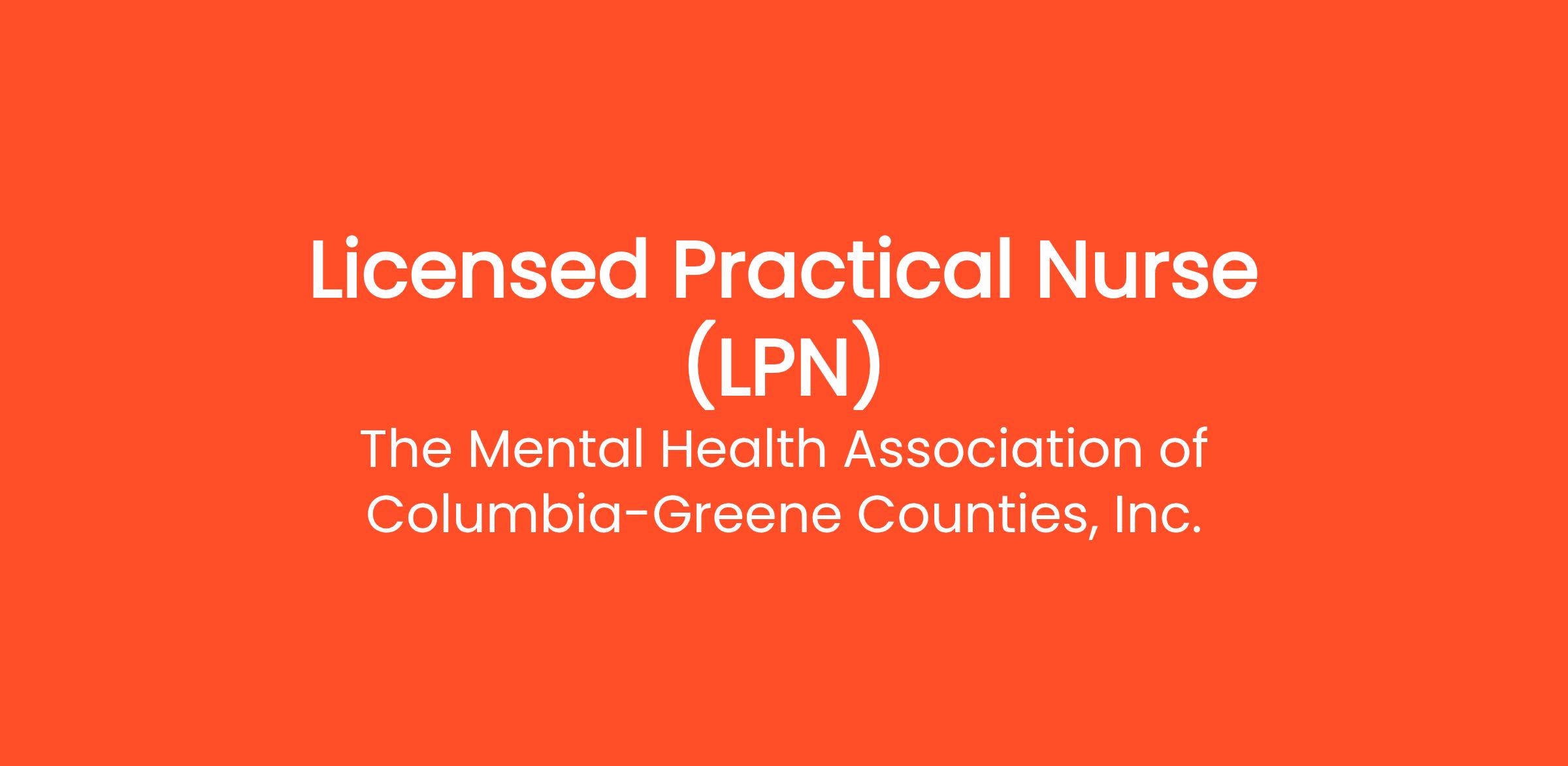 The Mental Health Association of Columbia-Greene Counties is seeking a full-time Licensed Practical Nurse (LPN) for our PROS (Personal Recovery Oriented Services) program. The PROS program supports Columbia and Greene County residents in their recovery from the effects of mental illness. Our integrated team provides a customized array of recovery-focused services that help individuals build skills, increase independence, and work toward meaningful life goals in areas such as employment, education, community living, and relationships.