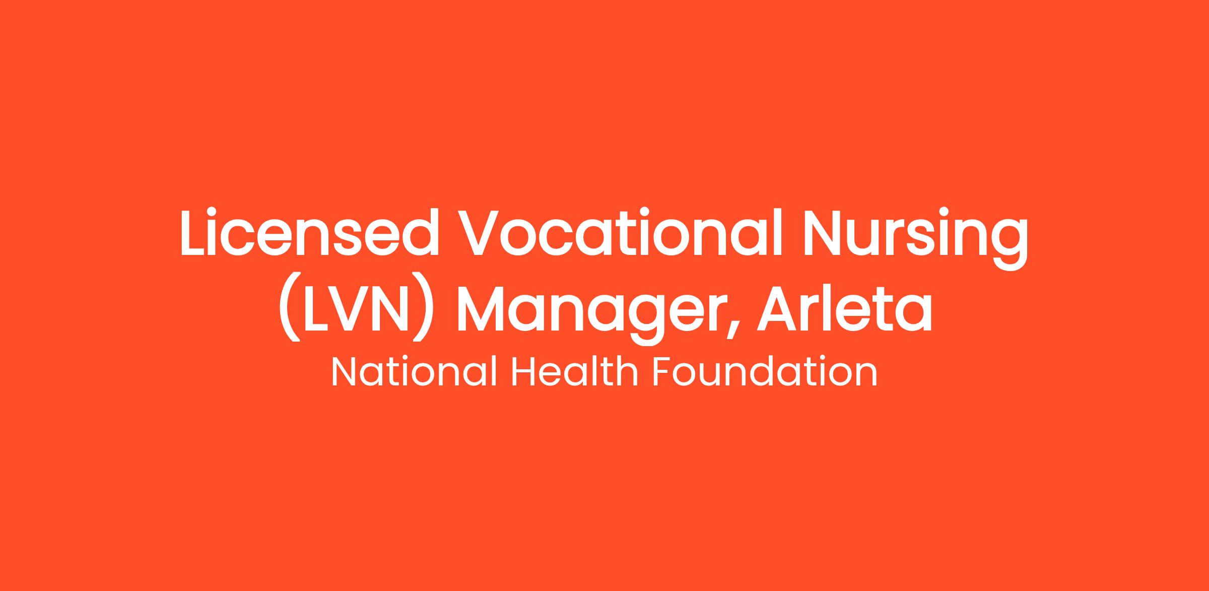 POSITION TITLE: Licensed Vocational Nursing (LVN) Manager