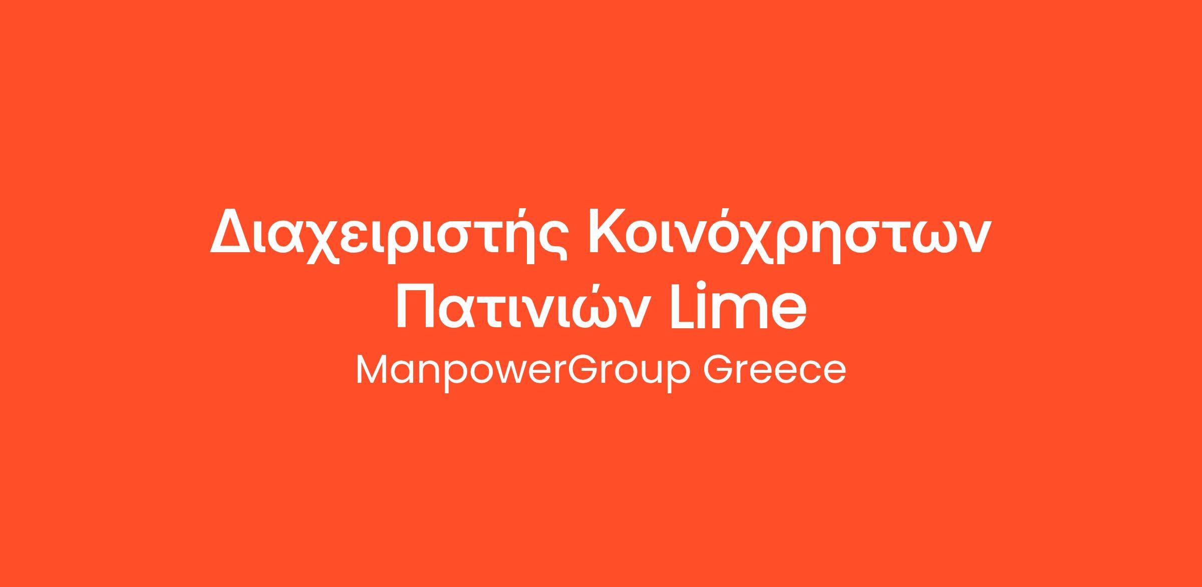 Η ManpowerGroup Greece, ηγέτιδα δύναμη στο χώρο του ανθρώπινου δυναμικού, σε συνεργασία με τη Lime, τη μεγαλύτερη εταιρεία κοινόχρηστων ηλεκτρικών οχημάτων στον κόσμο, αναζητά Διαχειριστή Κοινόχρηστων Οχημάτων.