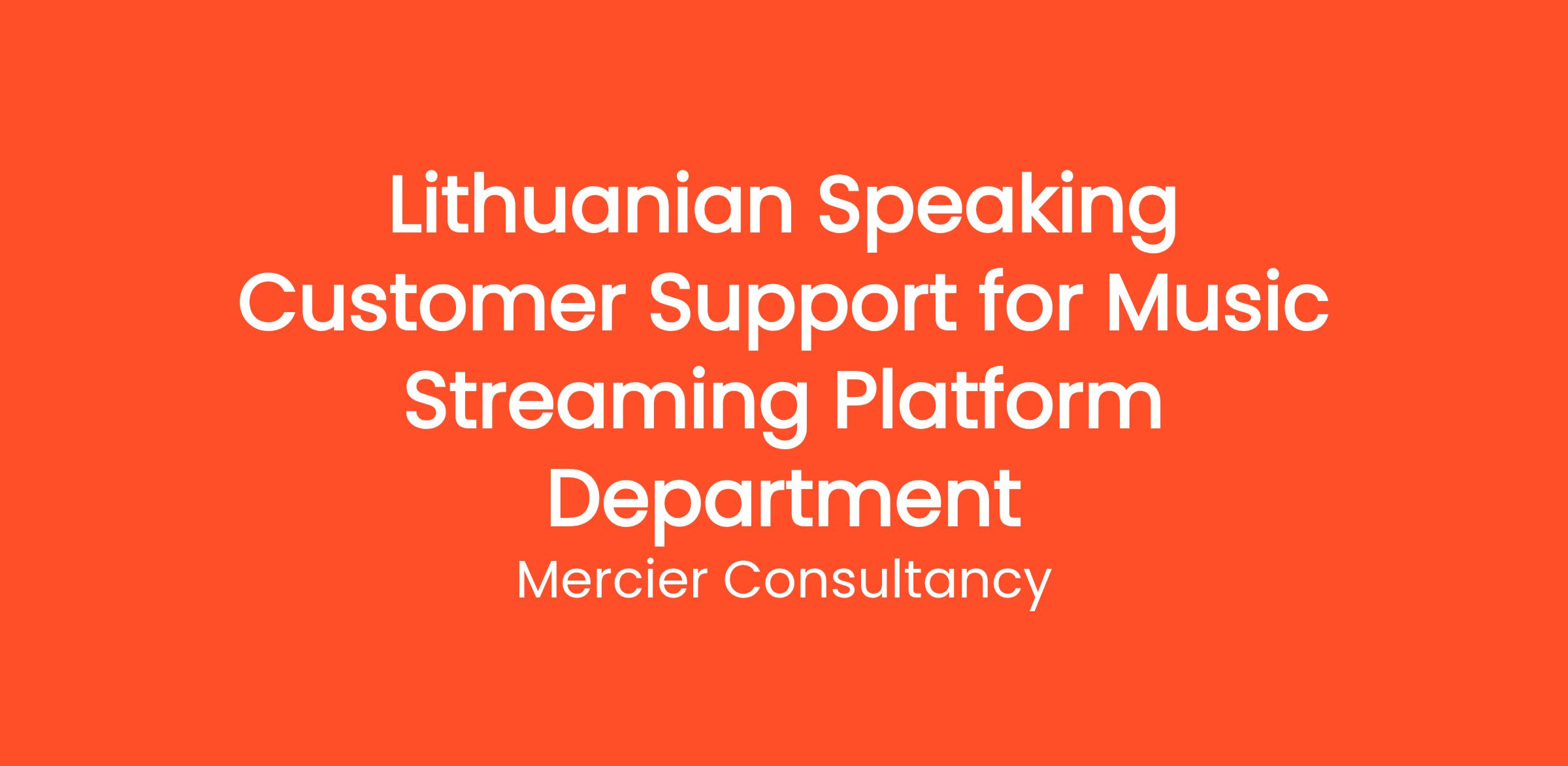 Mercier Consultancy is thrilled to announce an opening for a Lithuanian Speaking Customer Support Representative for our Client's Music Streaming Platform Department! In this key entry level role, you will be the frontline support for our Lithuanian-speaking users, assisting them with their inquiries and enhancing their overall experience on our music streaming platform. Your language skills and passion for music will be instrumental in delivering exceptional customer service.