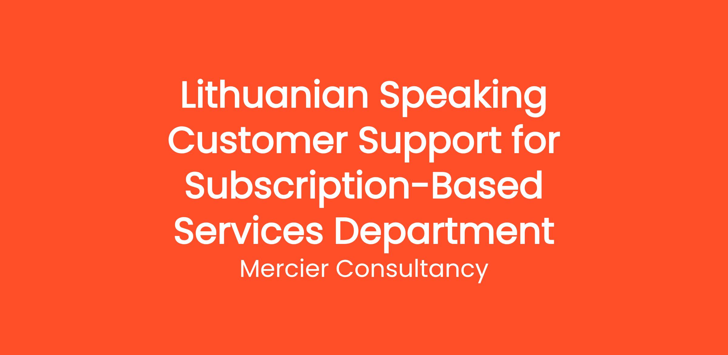 Mercier Consultancy is excited to announce an excellent opportunity for a Lithuanian Speaking Customer Support Representative for our Client's Subscription-Based Services Department! In this vital entry-level role, you will serve as the main point of contact for our Lithuanian-speaking clients, providing them with outstanding support and assistance regarding their subscription services. Your fluency in Lithuanian will help us ensure a seamless experience for our customers.