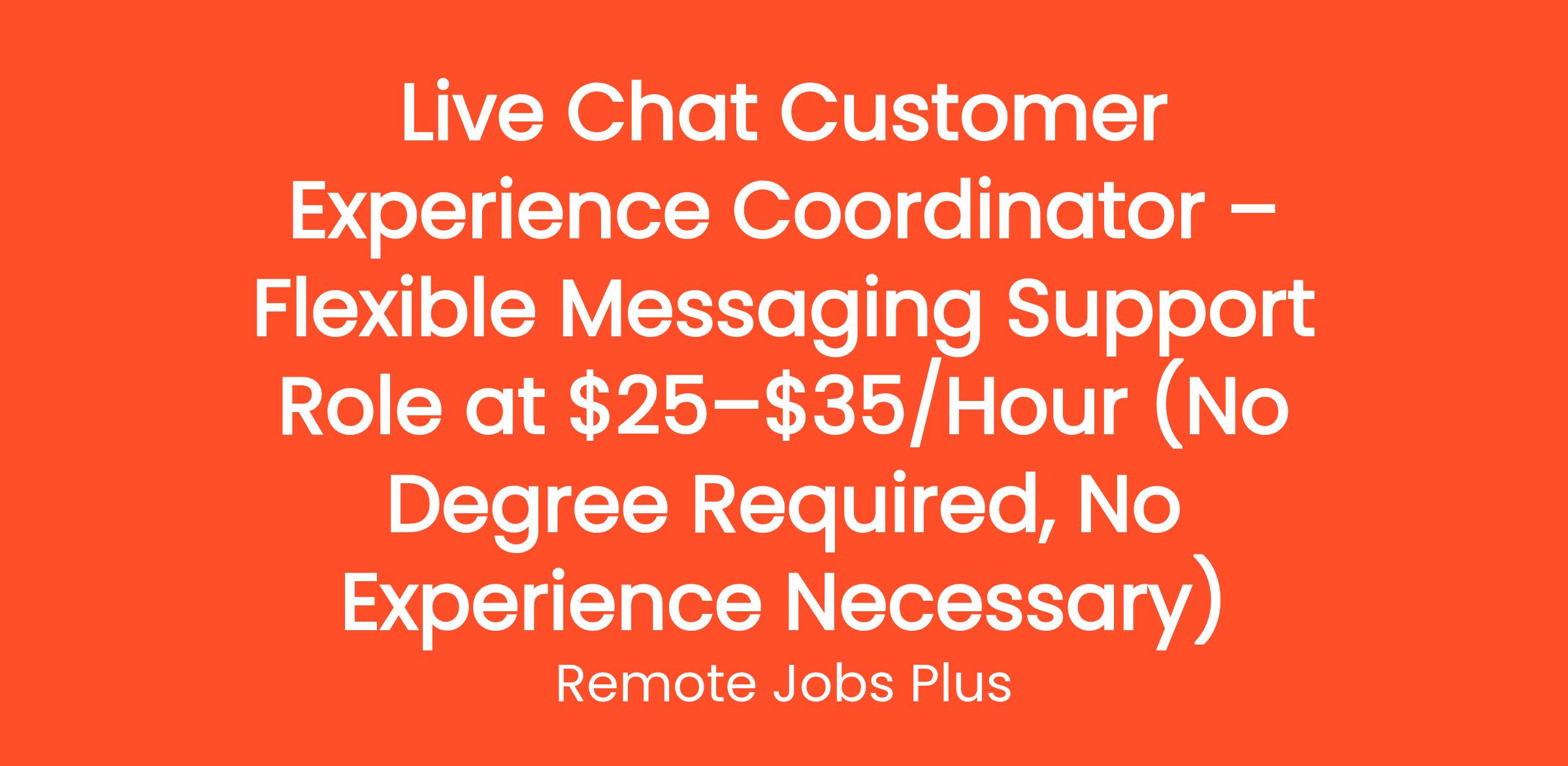 Live Chat Customer Experience Coordinator – Flexible Messaging Support Role at $25–$35/Hour (No Degree Required, No Experience Necessary)