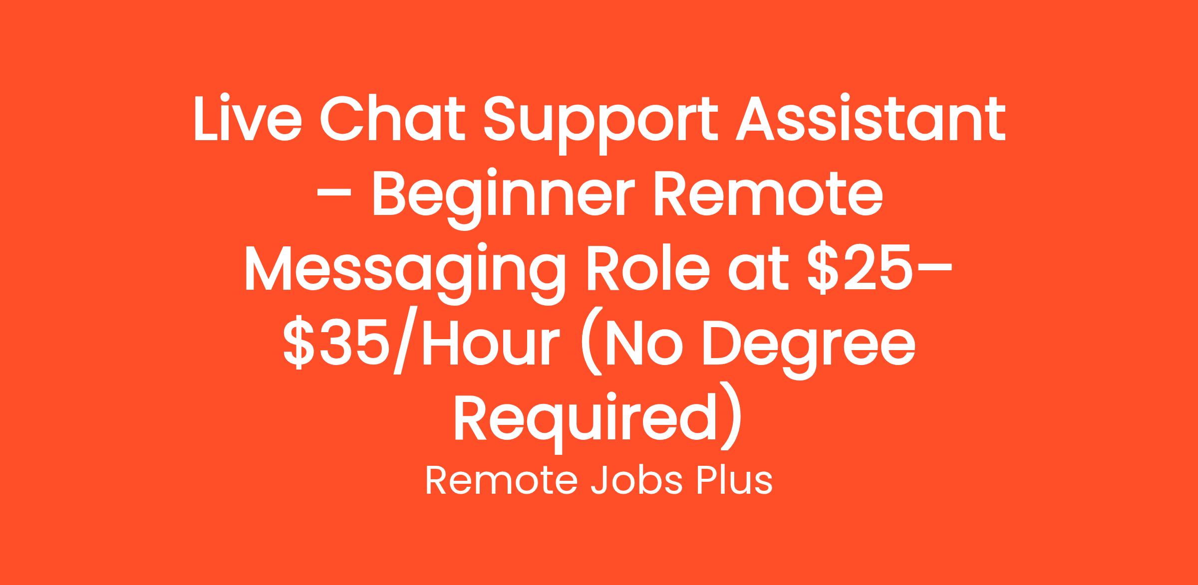 Live Chat Support Assistant – Beginner Remote Messaging Role at $25–$35/Hour (No Degree Required)
