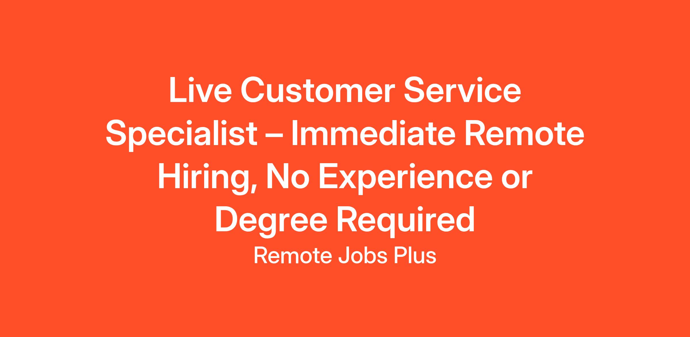 Live Customer Service Specialist – Immediate Remote Hiring, No Experience or Degree Required