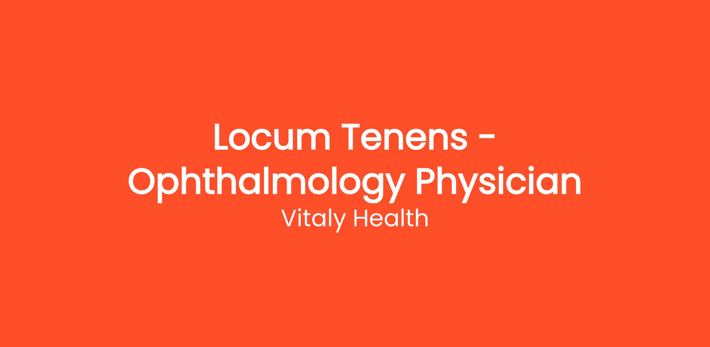 Job Title: Locum Tenens - Ophthalmology Physician