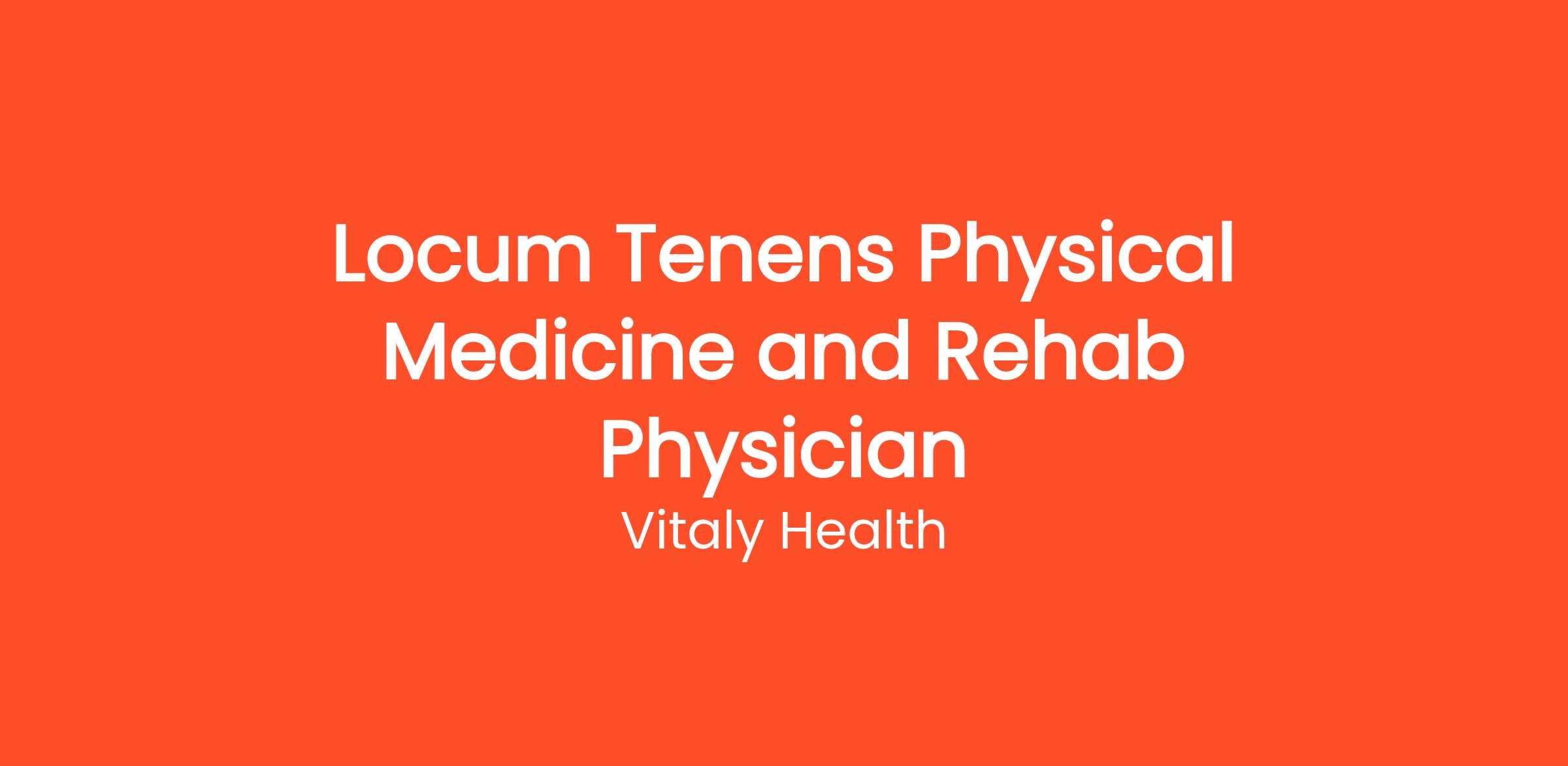 Job Title: Locum Tenens Physical Medicine and Rehab Physician