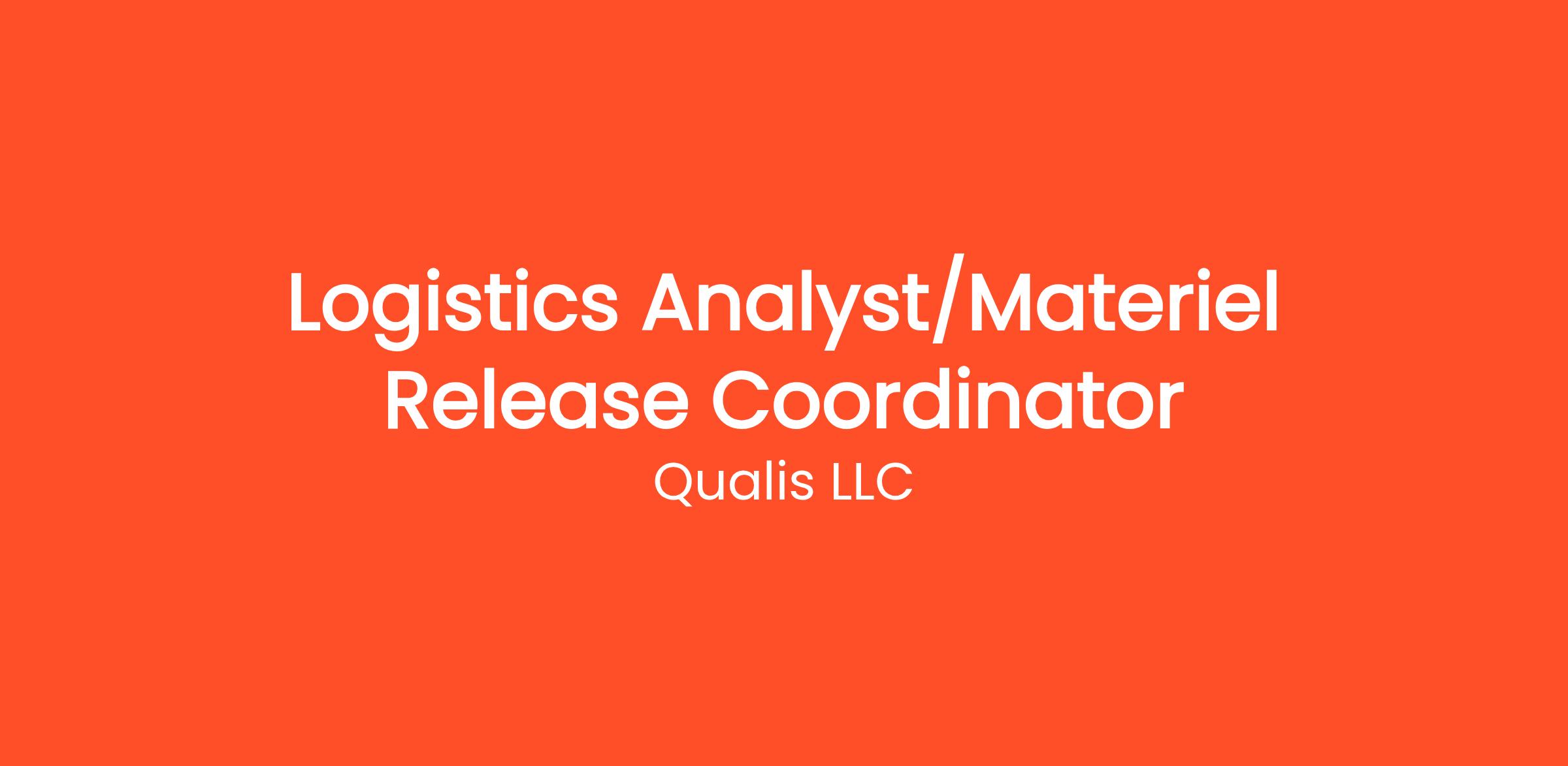 Qualis LLC is looking for an experienced Logistics Analyst / Materiel Release Coordinator to provide customer support with Materiel Release, Type Classification, and Logistics related activities and projects. Candidate will support U.S. Army programs on Redstone Arsenal in Huntsville, AL. Position requires full time support in a traditional office setting. Candidate will be required to collaborate with with government and contractor staff over multiple functional disciplines, offices, and leadership levels. Candidate must be a self-starter, highly motivated, able to multi-task and possess excellent interpersonal skills.