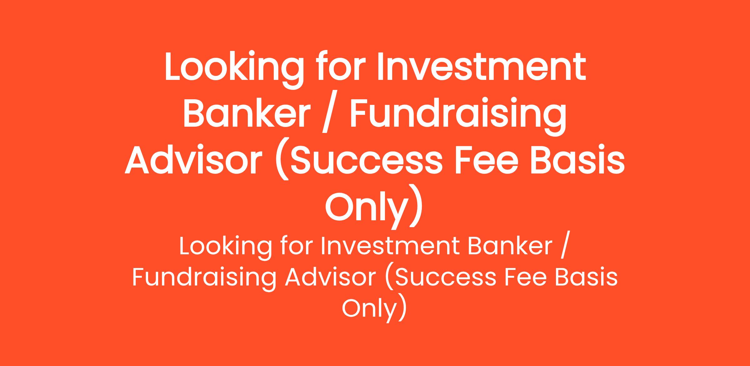 **Title:** Looking for Investment Banker / Fundraising Advisor (Success Fee Basis Only) **Description:** I am a founder of an early-stage startup and currently seeking an experienced **Investment Banker... (Budget: ₹12500 - ₹37500 INR, Jobs: Business Development, Business Strategy, Financial Analysis, Financial Consulting, Financial Modeling, Fundraising, Investment Banking, Market Research, Sales, Startup Consulting)