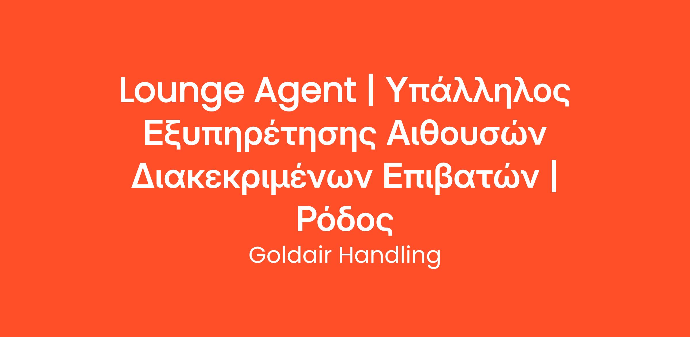 Η Goldair Handling, η μεγαλύτερη ελληνική εταιρεία επίγειας εξυπηρέτησης, με δραστηριότητα τόσο στην Ελλάδα όσο και το εξωτερικό, αναζητά Lounge Agents για το Αεροδρόμιο της Ρόδου.