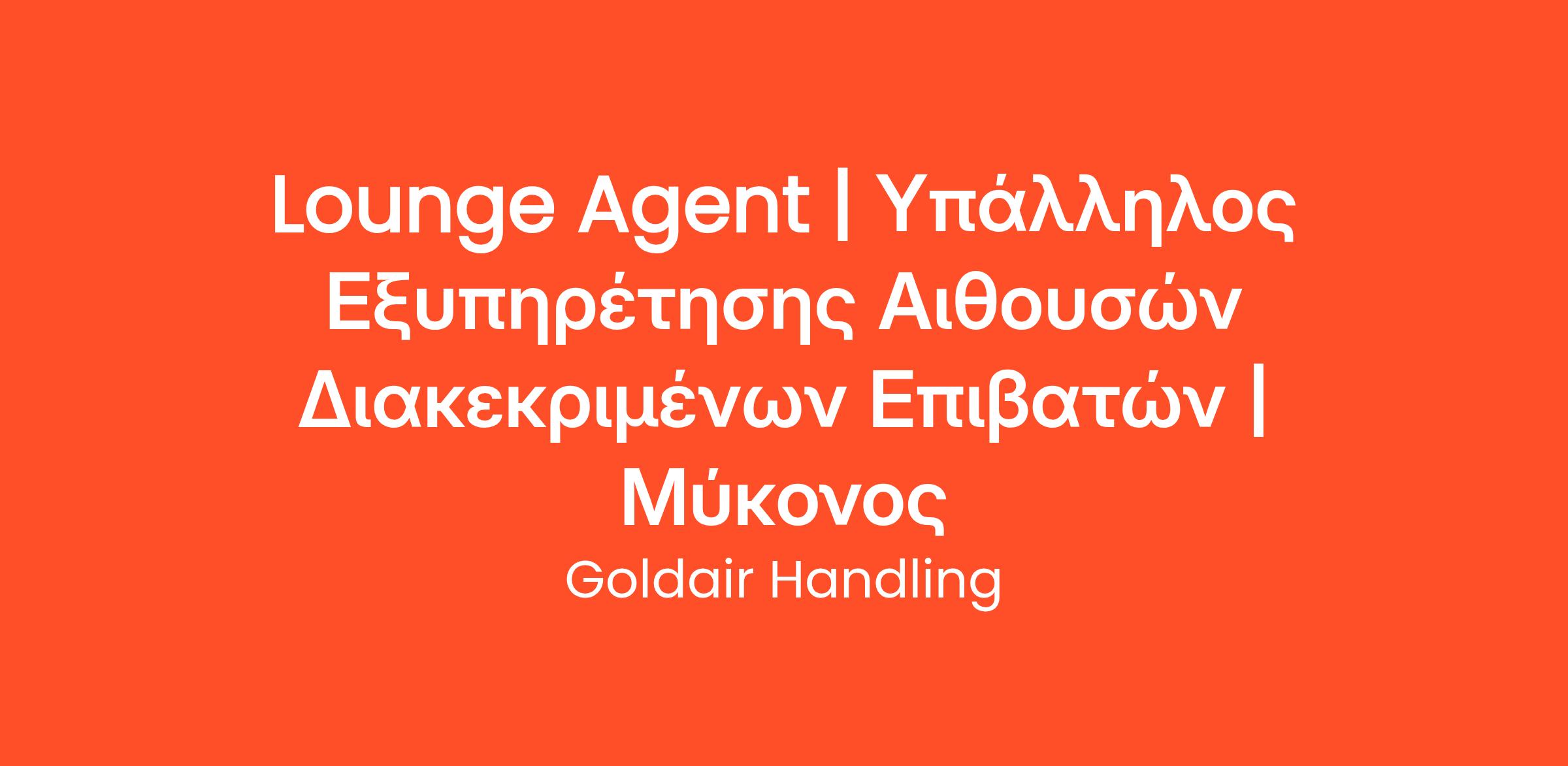 Η Goldair Handling, η μεγαλύτερη ελληνική εταιρεία επίγειας εξυπηρέτησης, με δραστηριότητα τόσο στην Ελλάδα όσο και το εξωτερικό, αναζητά Lounge Agents για το Αεροδρόμιο της Μυκόνου.