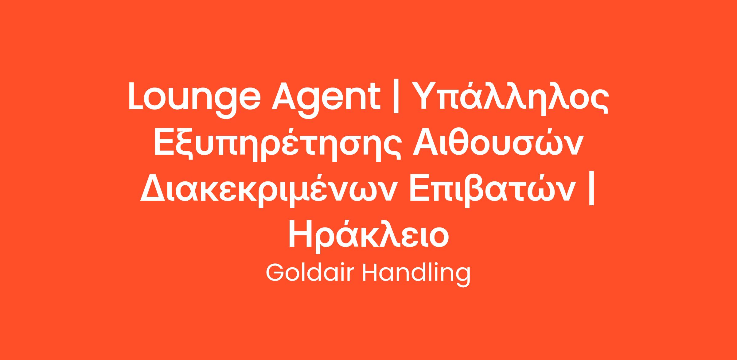 Η Goldair Handling, η μεγαλύτερη ελληνική εταιρεία επίγειας εξυπηρέτησης, με δραστηριότητα τόσο στην Ελλάδα όσο και το εξωτερικό, αναζητά Lounge Agents για το Αεροδρόμιο του Ηρακλείου.
