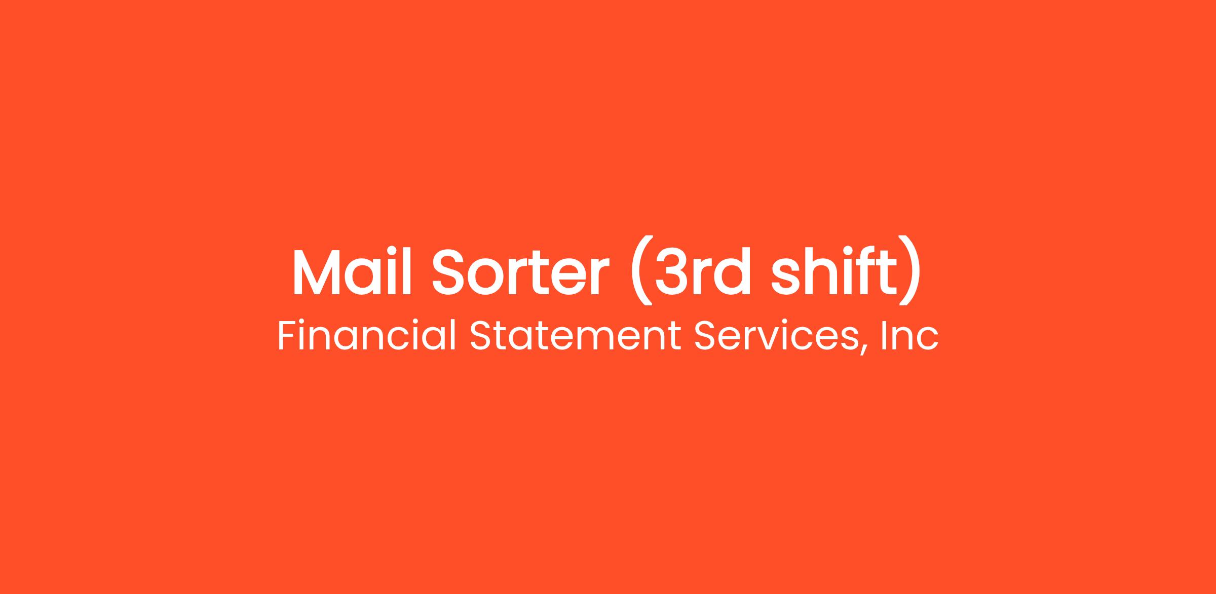 FSSI is looking for a full-time Mail Sorter to join our 3rd shift team in Orlando, Florida. This position is responsible for sorting of mail from the mail insert machine and assisting operators with mail production.