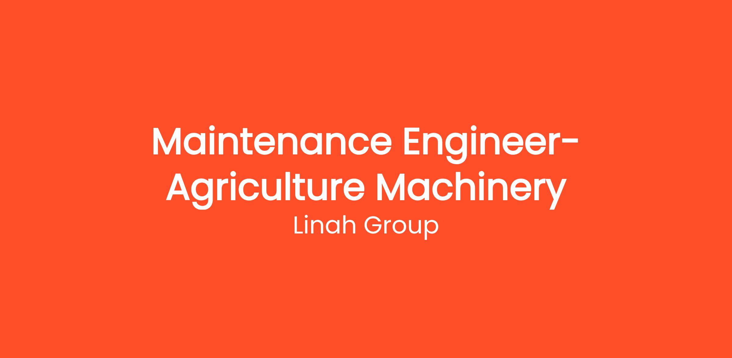 - 8 years Proven experience in maintenance, preferably in a farming or agricultural setting.