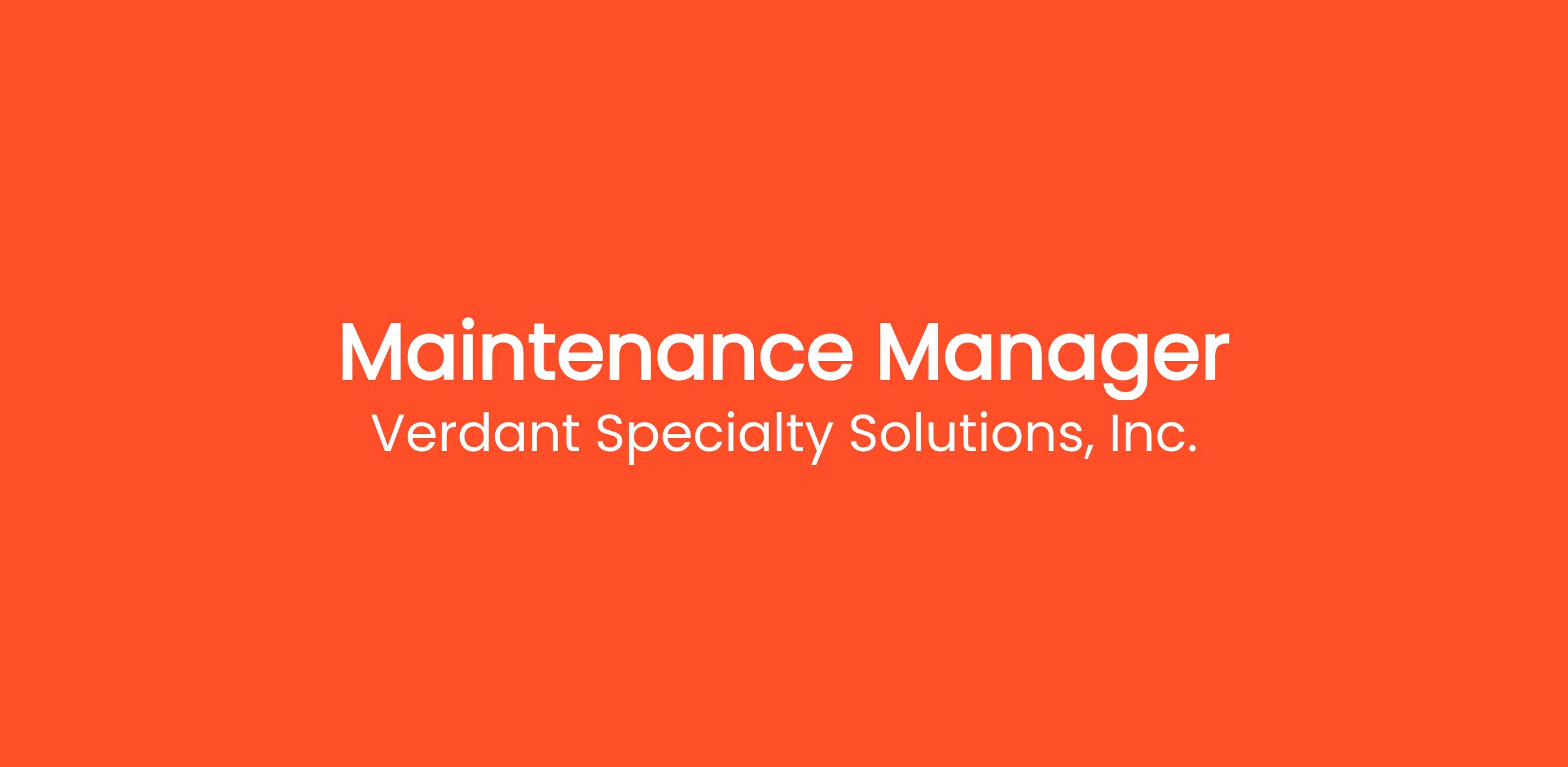 About the position This position's main role is to lead and manage the maintenance and utilities at the site, focusing on equipment reliability, along with leading the effort to move the plant maintenance into a predictive, proactive state. The person in this position will ensure the efficient utilization of departmental resources to enforce and comply with Health, Safety and Environmental (HSE) standards as set forth under various regulatory agencies and Verdant. Additionally, he/she will continually improve equipment, utility reliability, and implement cost efficiency measures.
