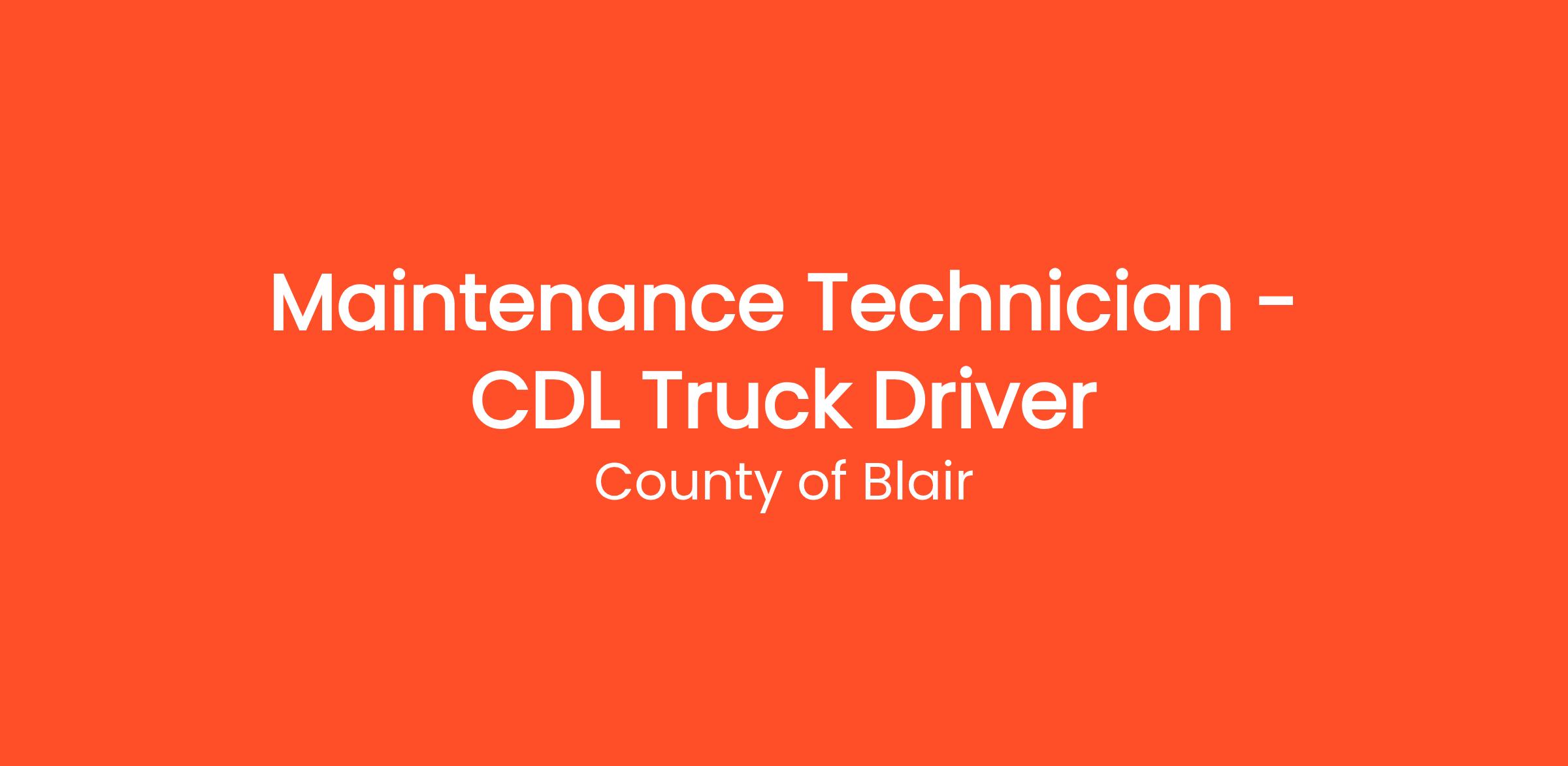 County of Blair seeks a hire who operates commercial and large vehicles, dump trucks, snow plow, and common construction vehicles to make deliveries, complete assignments, and maintain County-owned roads and bridges. Essential duties include monitoring loading and unloading of cargo; picking up and delivering cargo; inspecting vehicles and safety equipment operated to ensure working condition; maintaining log of activities and mileage; observing safety protocols and traffic laws; maintaining grounds, roads, bridges in clean and orderly manner via mowing, pruning, removing snow and ice, trimming, and weeding; performing minor pest management; fertilizing lawns; ensuring plant upkeep; removing debris from catch basins, culverts, ditches, and drains; removing litter and debris from roadways; completing service requests; and must be able to work call-back, emergency call-out, extended shifts, as well as evenings, nights, weekends, and holidays.