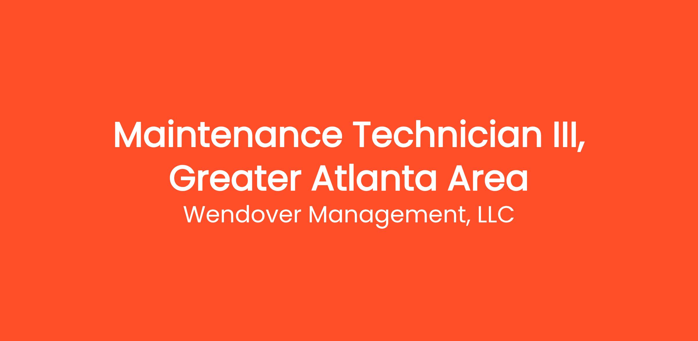 Join Wendover as a Maintenance Technician III in the Greater Atlanta Area – Be the Difference Behind the Scenes
