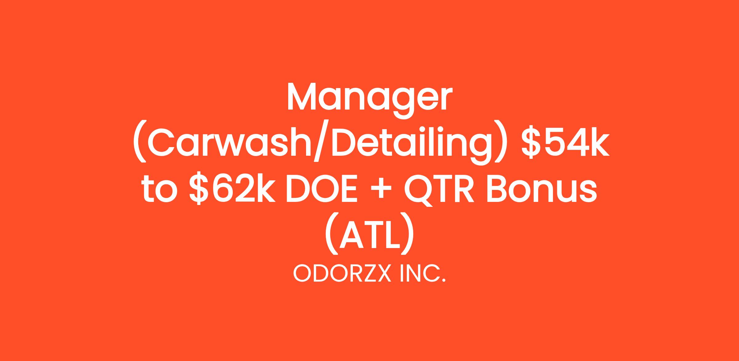 Manager (Carwash/Detailing) $54k to $62k DOE + QTR Bonus (ATL)