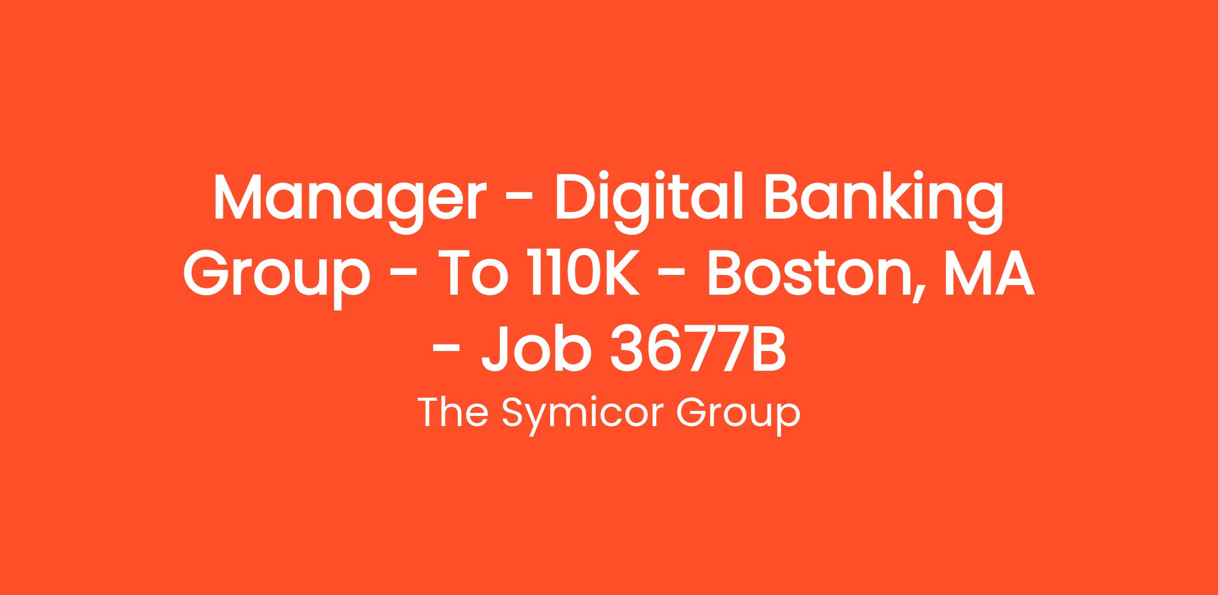 Manager – Digital Banking Group – To $110K – Boston, MA – Job # 3677B
