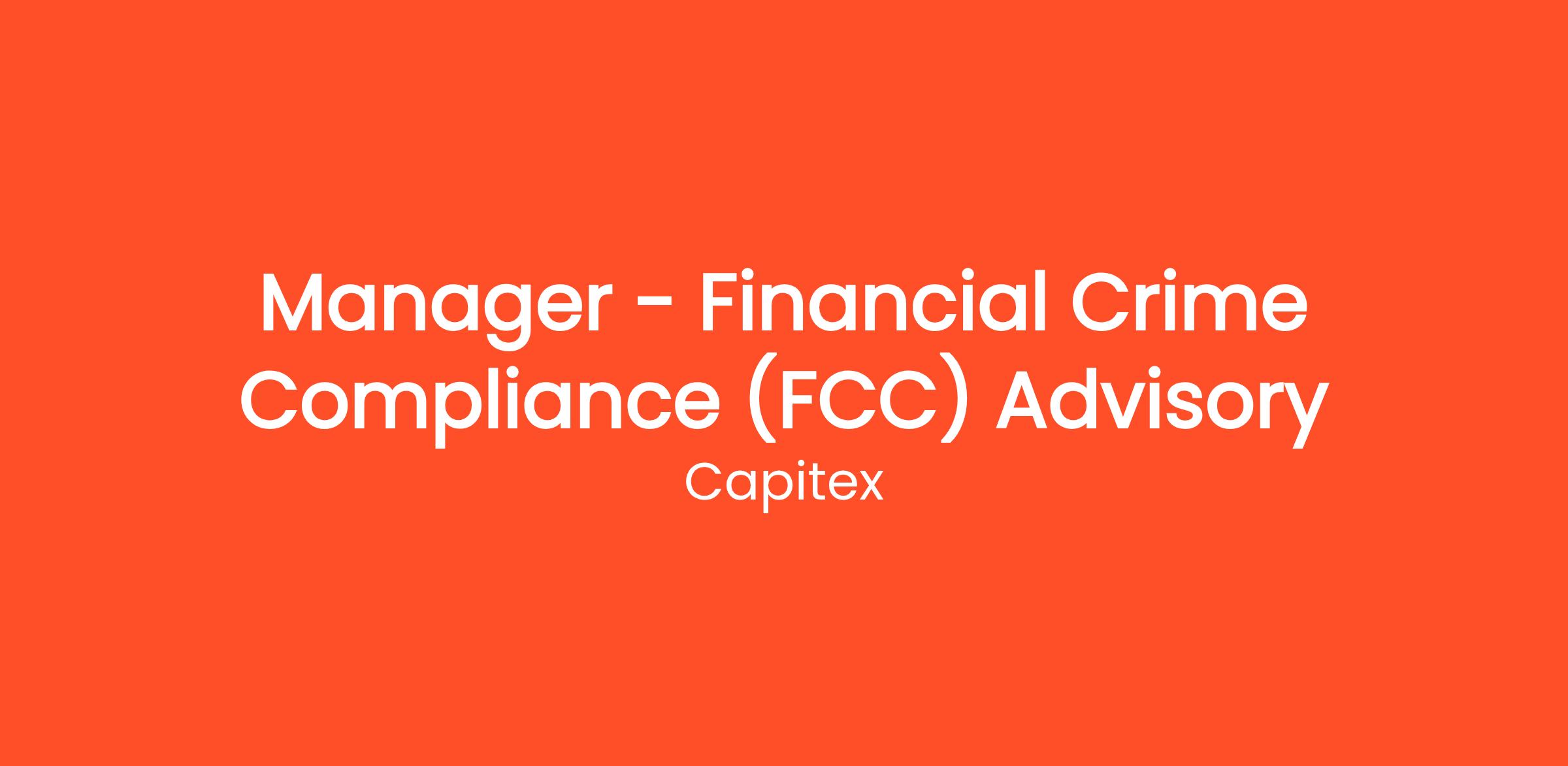 Job Title: Manager – Financial Crime Compliance (FCC) Advisory