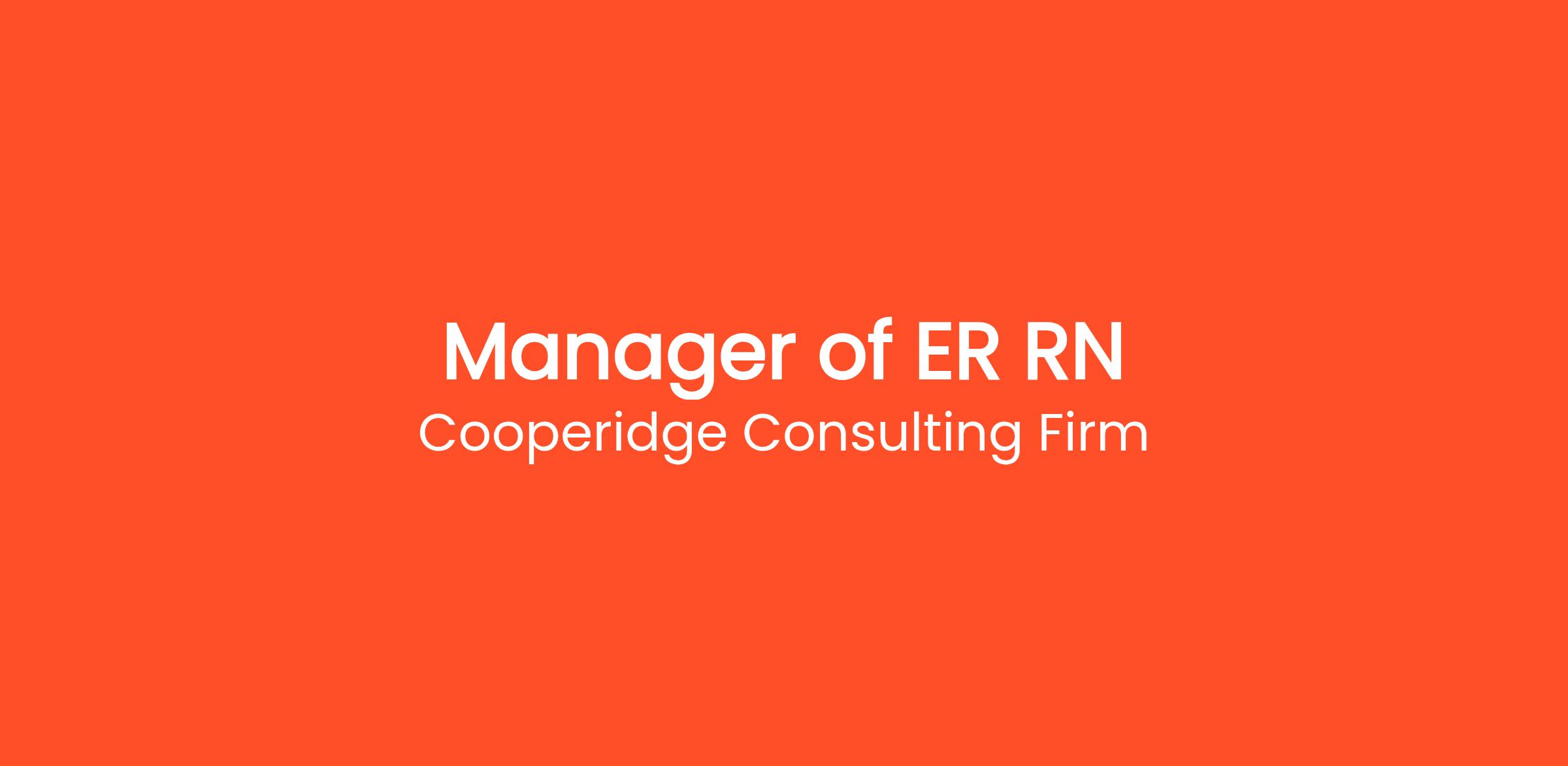 Cooperidge Consulting Firm is seeking a Manager of Emergency Services (ER RN) for a top healthcare client in Independence, MO.