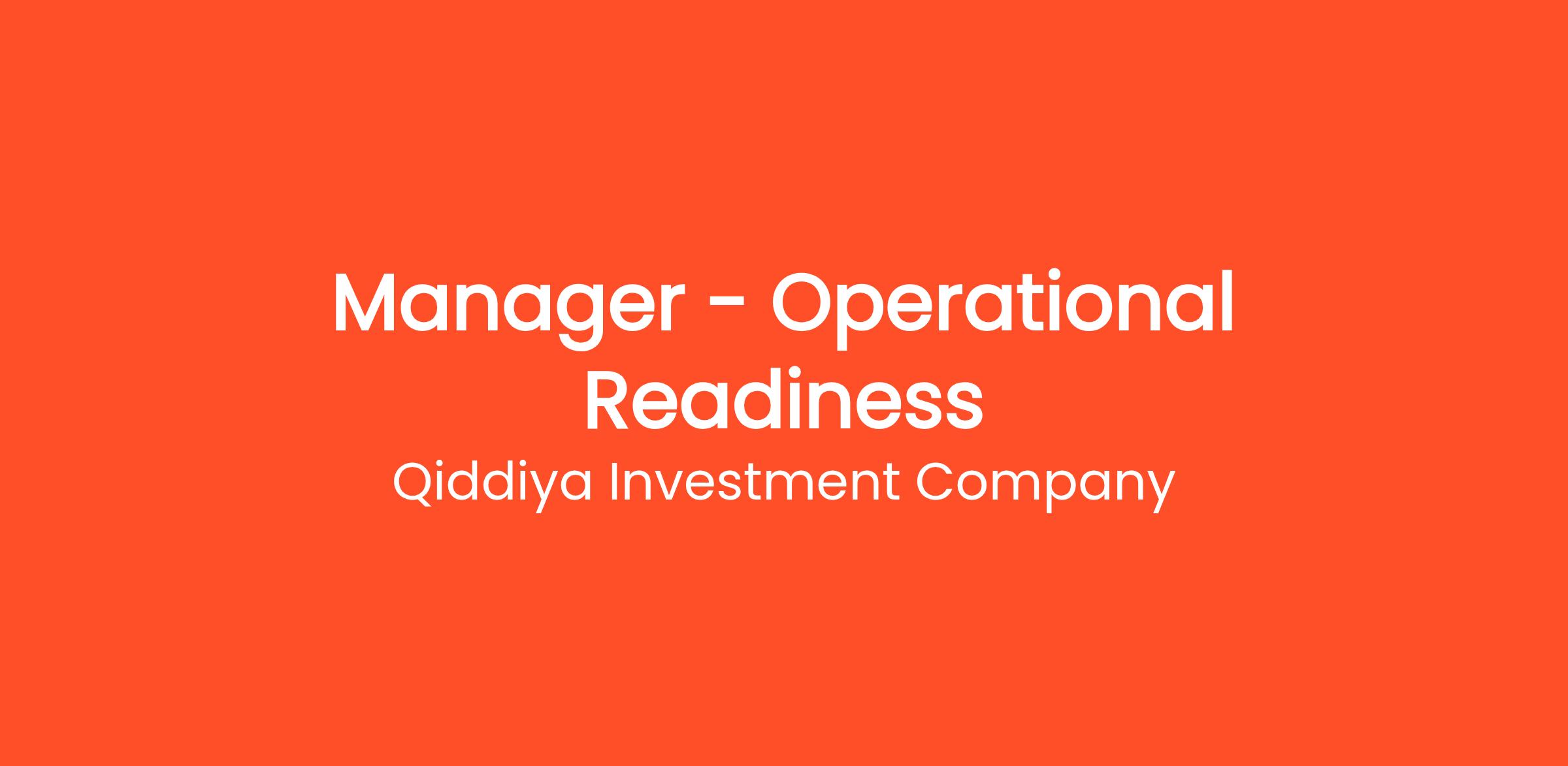 Qiddiya Investment Company is excited to announce an opening for the position of Manager - Operational Readiness. In this critical role, you will be responsible for ensuring that all operational aspects of our ambitious projects are ready for successful implementation. This includes strategizing, planning, and executing operational readiness initiatives that align with our goal of delivering world-class entertainment and leisure experiences.