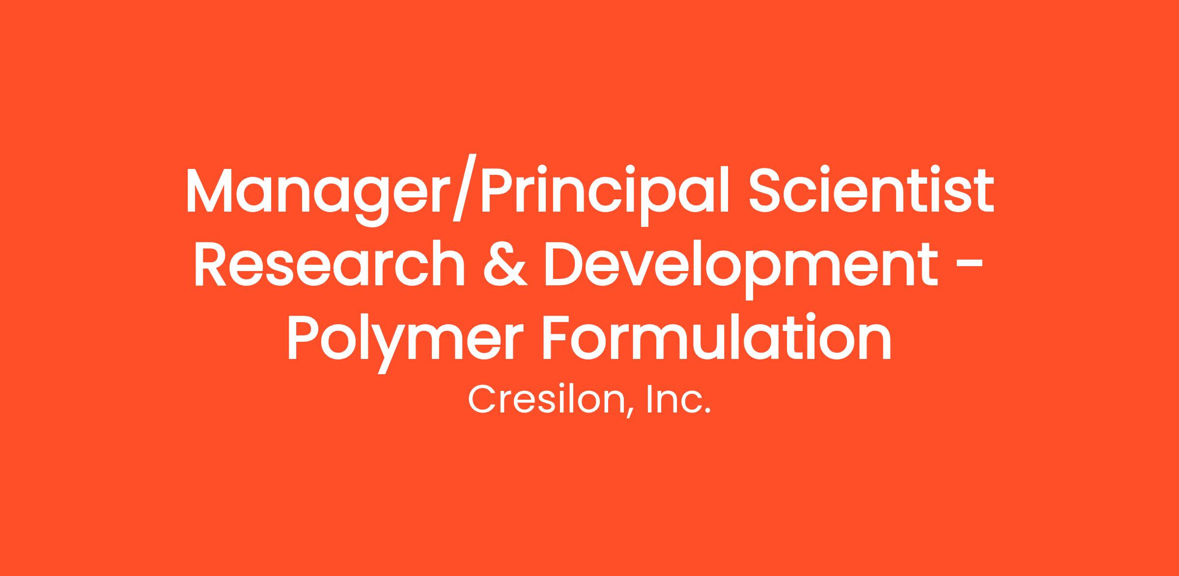 - Create and lead experimentation for exploratory and/or product development research with focus on polymeric materials and their use.