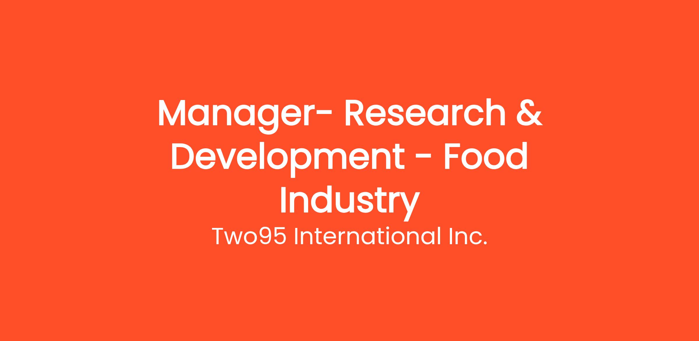 • Industry Background: Food Industry, with Product Development experience and leadership to manage a team.