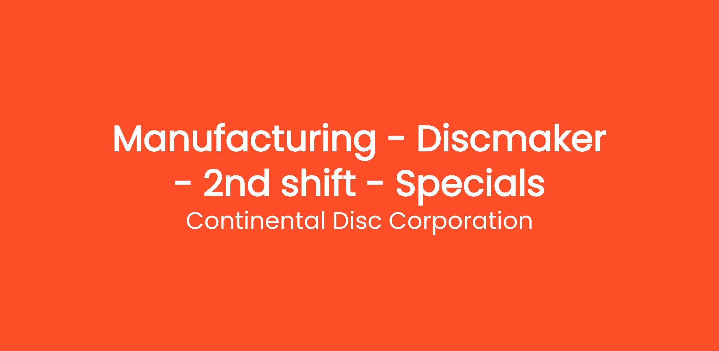 Manufacturing - Discmaker - 2nd shift - Specials