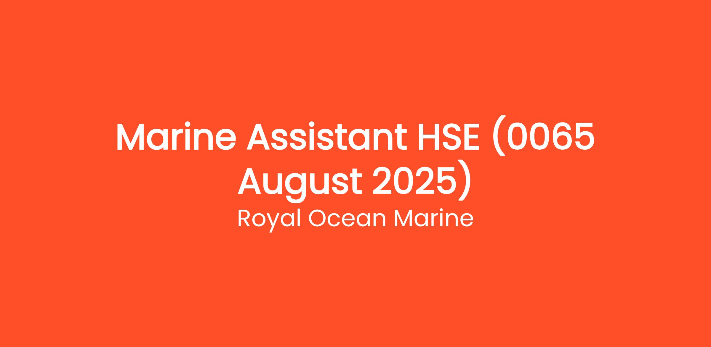Royal Ocean Marine is seeking a dedicated and proactive Marine Assistant HSE (Health, Safety, and Environment) to join our client's team. In this critical role, you will assist in implementing and monitoring health and safety policies and procedures to ensure a safe working environment for all marine operations. Your efforts will contribute significantly to promoting a culture of safety within the organization.