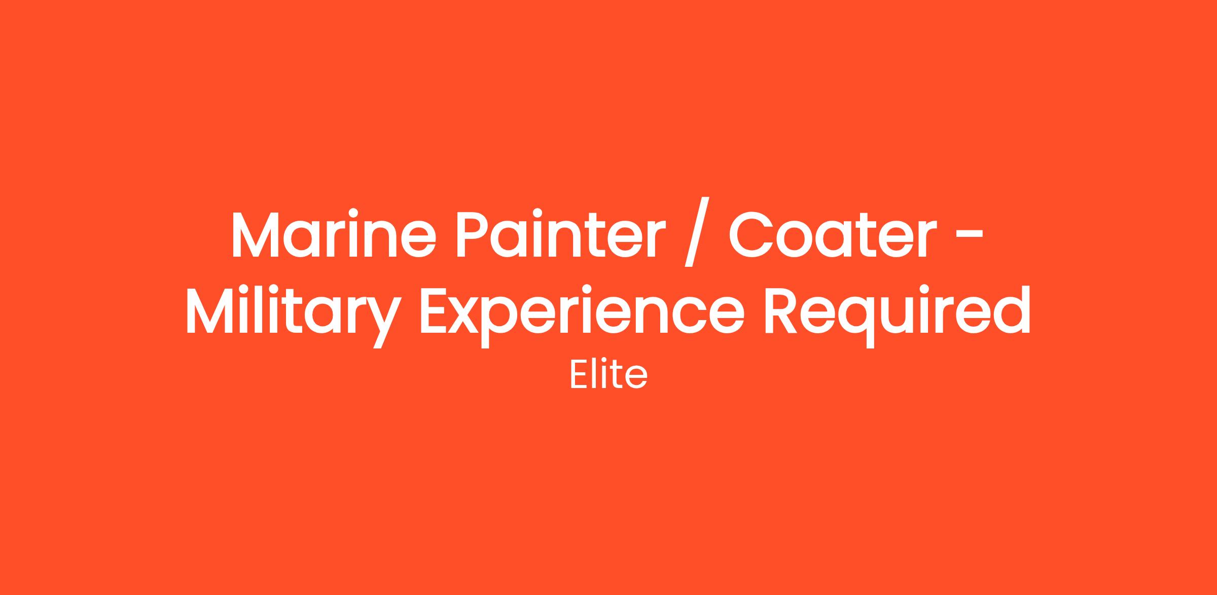 We are seeking a skilled Maritime Painter/Coater to join our team. We are seeking former or current Military professionals for this specific role. In this role, you will be responsible for preparing and applying protective coatings—including paints, varnishes, and epoxies—to vessels and marine structures. Your work will safeguard surfaces such as steel, fiberglass, and wood from corrosion, wear, and harsh maritime environments. The position requires expert surface preparation, coating application, and strict adherence to safety and environmental standards.