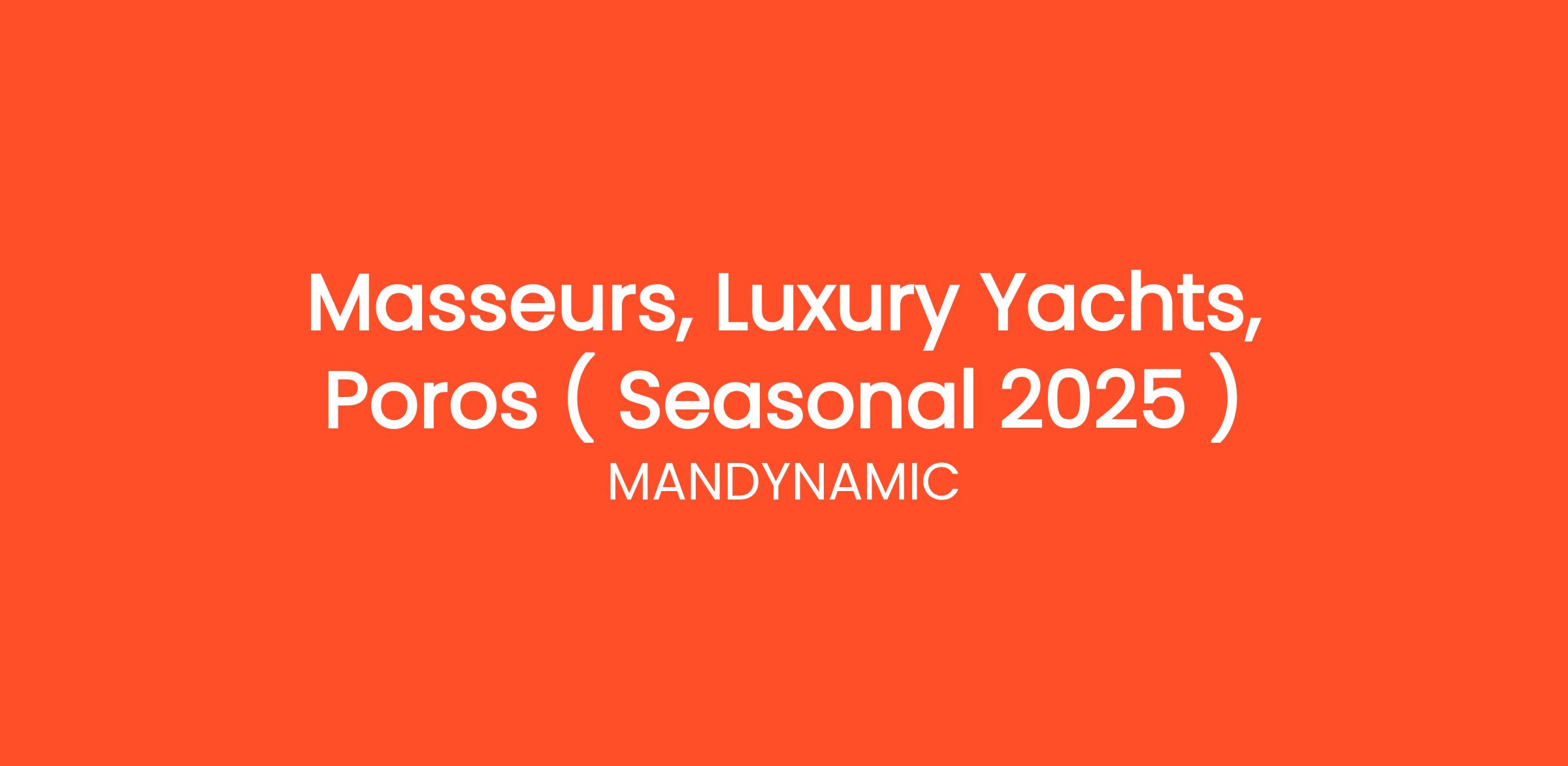 MANDYNAMIC is seeking Masseurs on behalf of Luxury Yachts in Poros, Greece for the summer season May to October 2025.