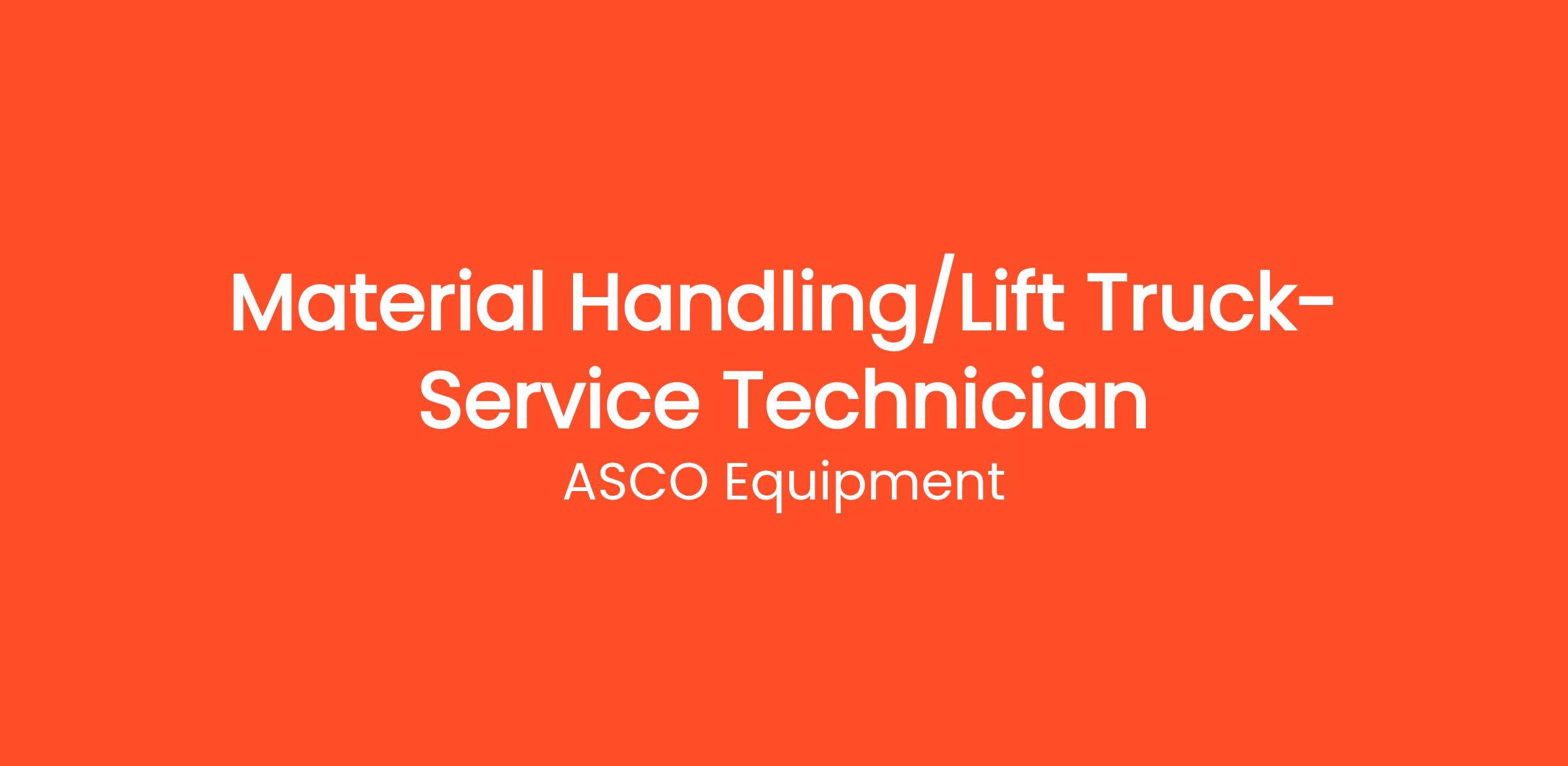 At ASCO, we live by one motto: “We’re On It.” Whether it’s sales, service, rentals, or repairs, we’re ready to tackle any equipment challenge our customers face. We're currently seeking a skilled and motivated Material Handling/Lift Truck Service Technician to join our team in Euless, TX. Whether you're a seasoned professional or just starting your career, we offer hands-on training and a clear path for growth.
