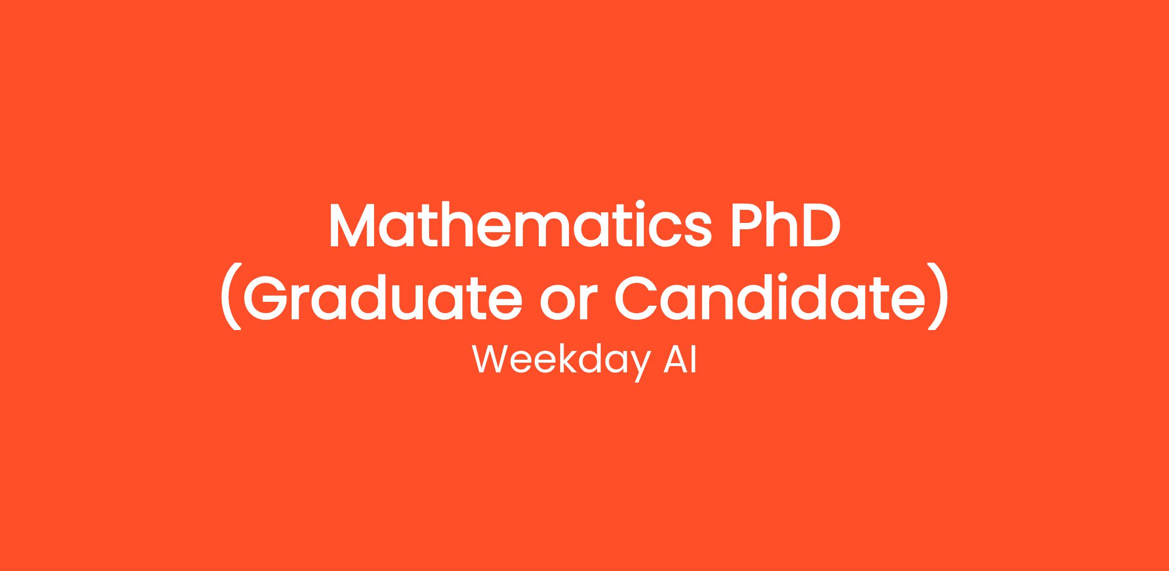 - Recent PhD graduate in Mathematics (within the last 4 years) or current PhD candidate (at least 3 years into the program — typically 4th year post-undergrad entry or 3rd year post-master’s entry).