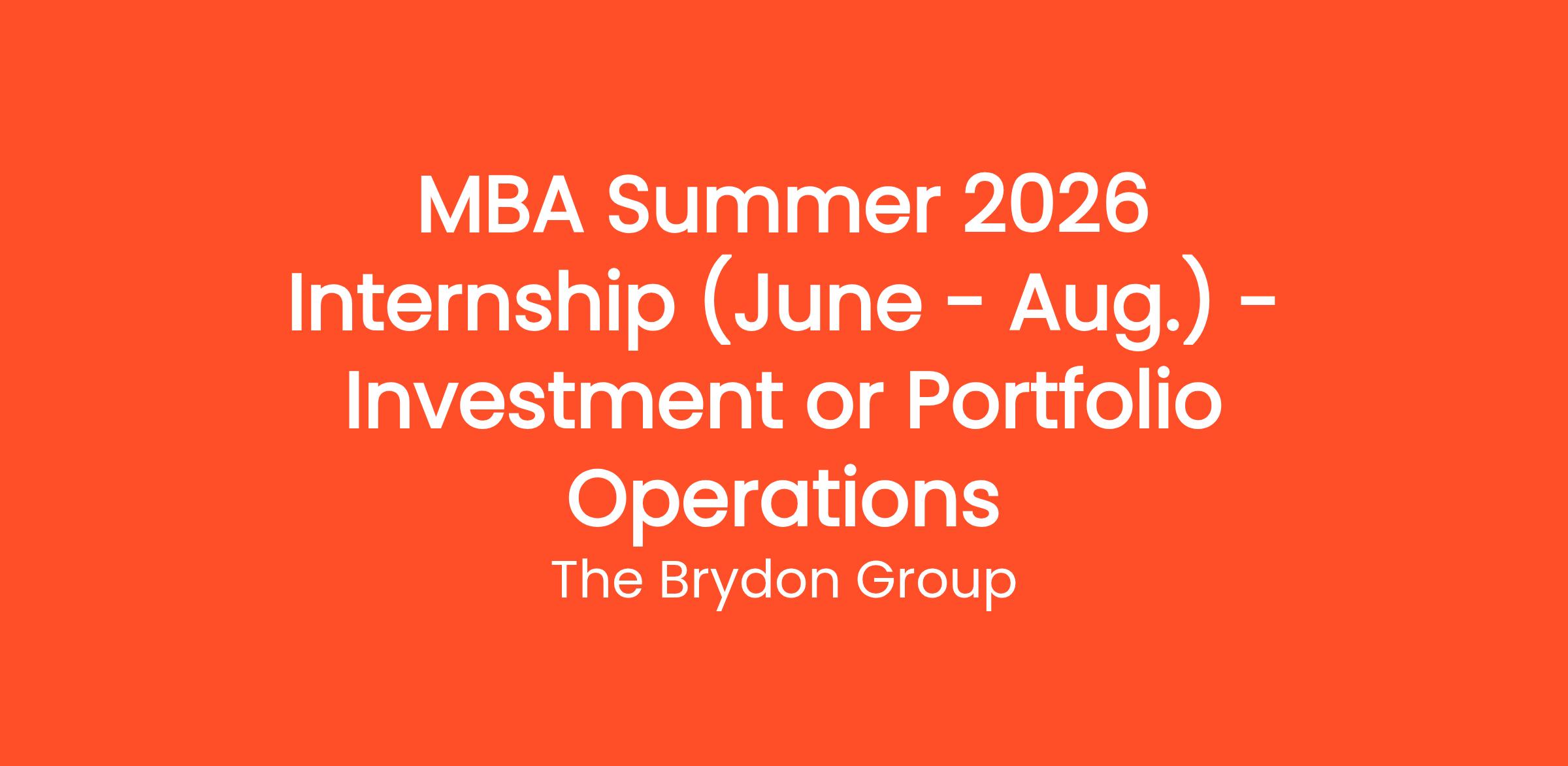 **WE ARE ACCEPTING EARLY INTEREST APPLICATIONS NOW FOR SUMMER 2026 INTERNSHIPS - THIS IS FOR A FULL-TIME (40HRS - $1500 WEEK) PAID INTERNSHIP WITH BRYDON'S INVESTMENT TEAM OR PORTFOLIO OPERATIONS TEAM**