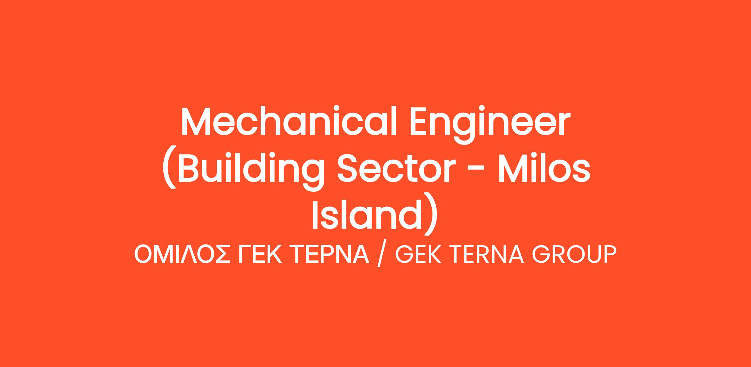 Mechanical Engineer (Building Sector – Milos Island)