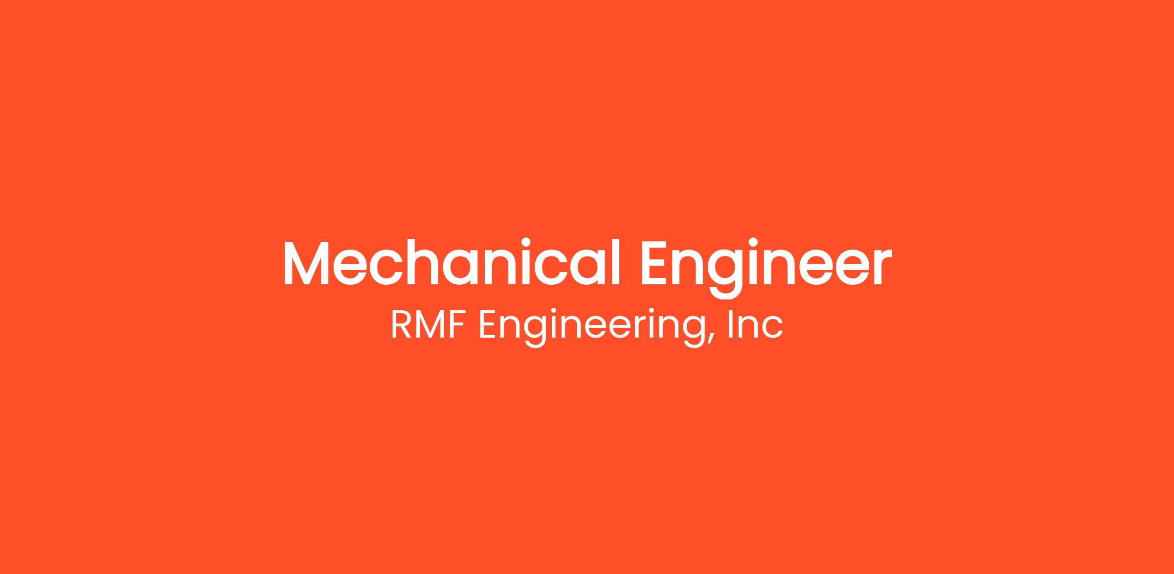 RMF Engineering, Inc. is currently seeking an experienced Mechanical Engineer for our Boston Division. This position carries great potential for a motivated individual interested in growing their technical design expertise within mechanical and sustainable design as well as developing their leadership abilities.