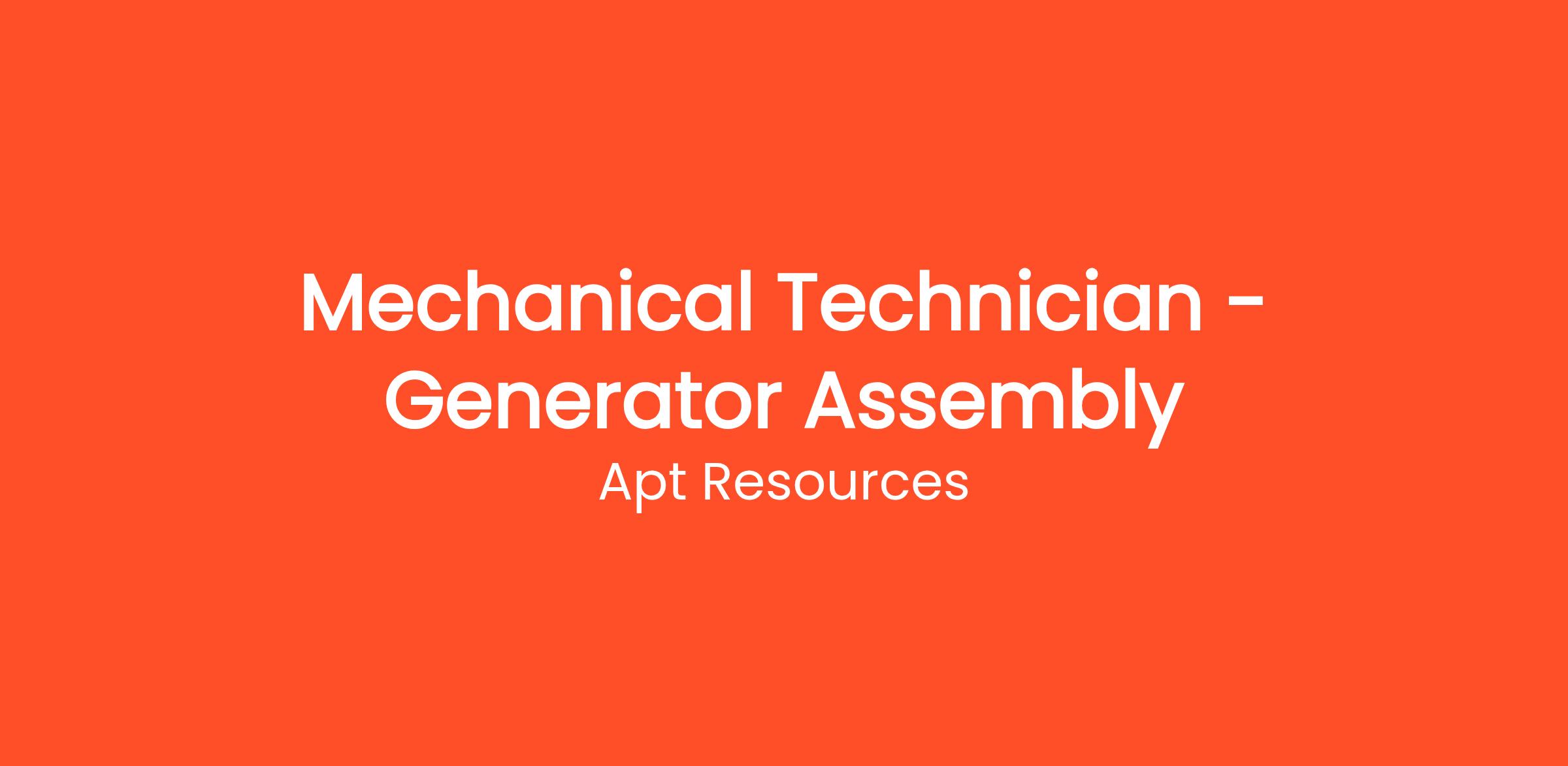Apt Resources is hiring experienced Mechanical Technicians to join our client’s generator maintenance team in Saudi Arabia. This role is perfect for mechanically inclined professionals with solid experience in maintaining and assembling generator components in industrial environments.