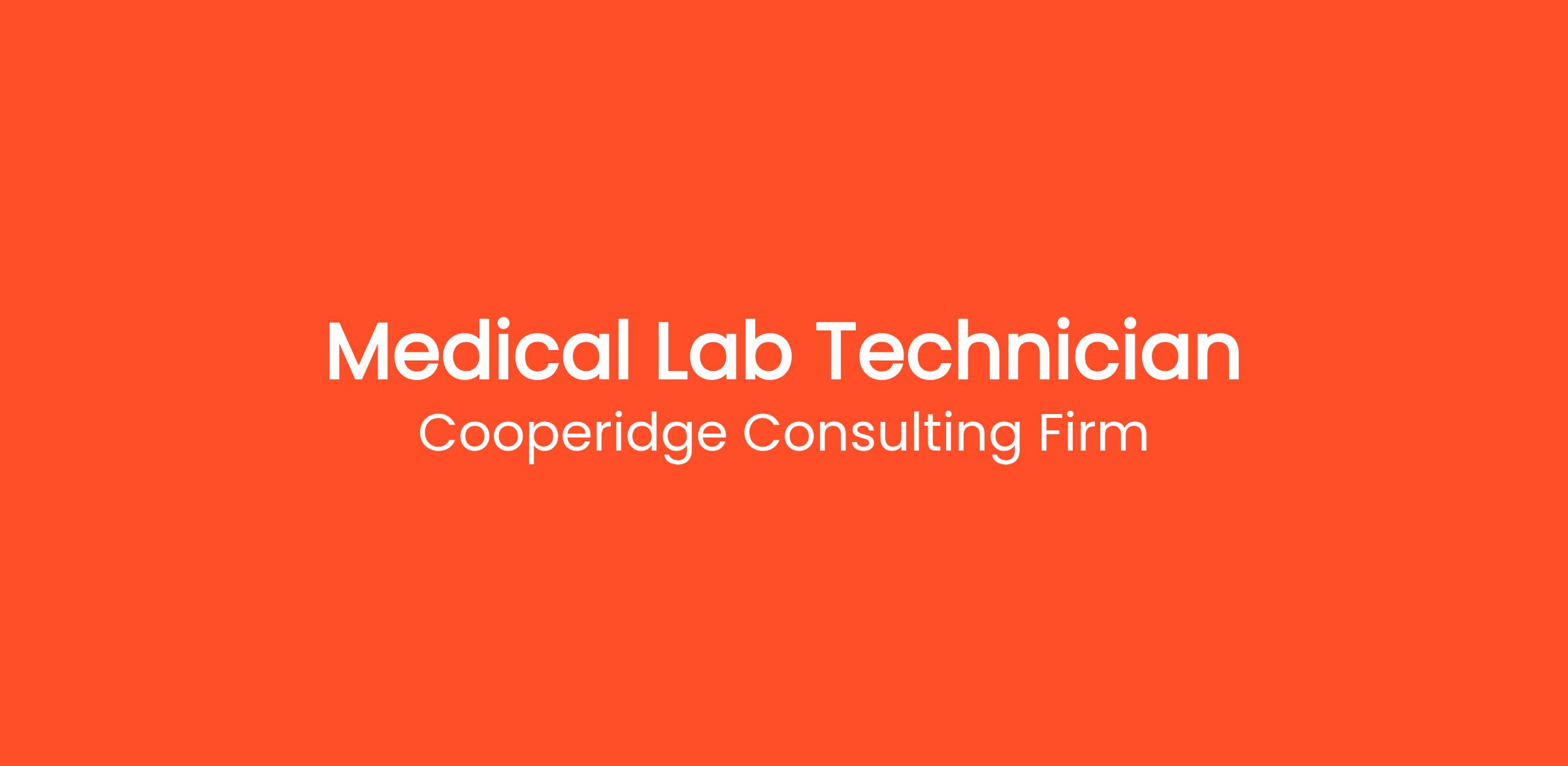 Cooperidge Consulting Firm is seeking a Medical Lab Technician (MLT) for a top Healthcare client.