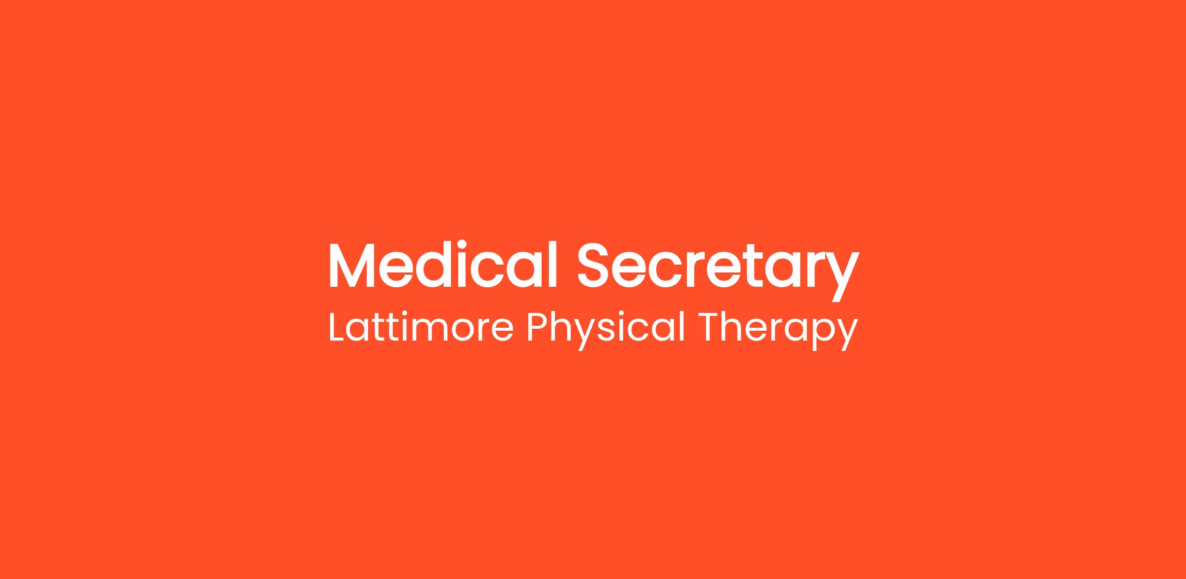 Lattimore Physical Therapy is seeking an experienced full-time medical secretary in our fast-paced private practice. The candidate must be a team player who is dependable, and hard-working.